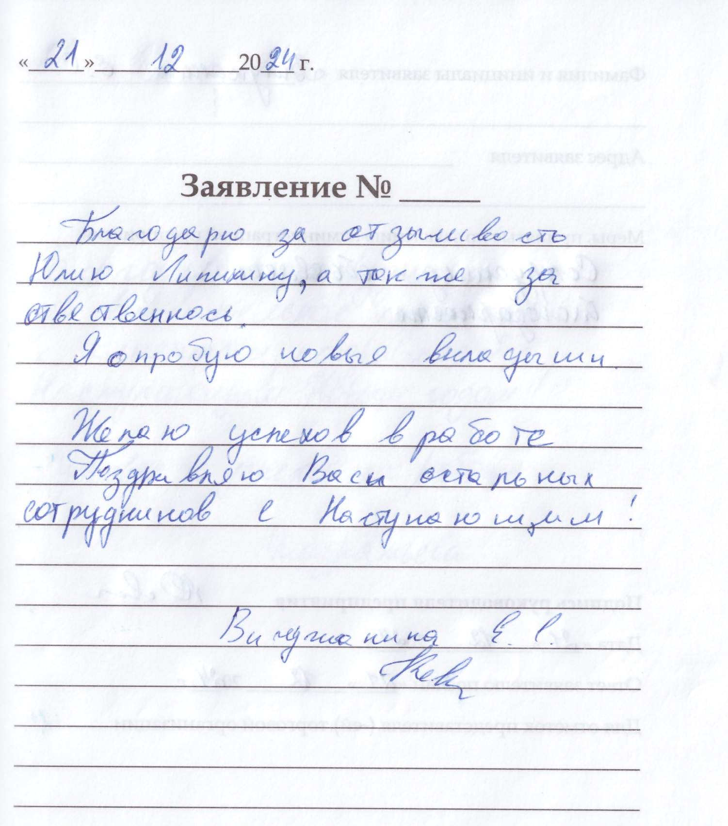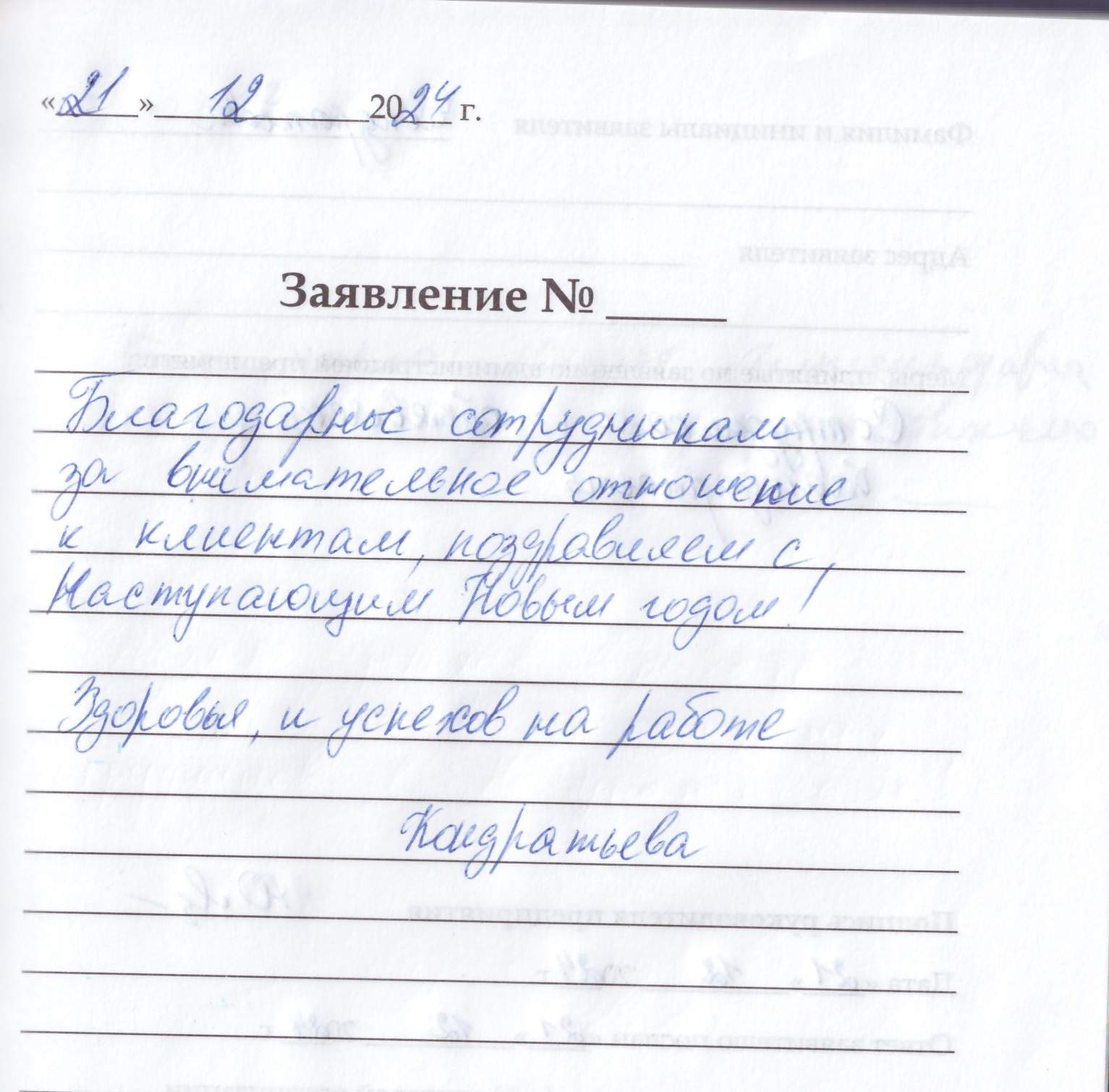 Благодарны сотрудникам за внимательное отношение к клиентам, поздравляем с наступающим Новым годом! Здоровья и успехов на работе