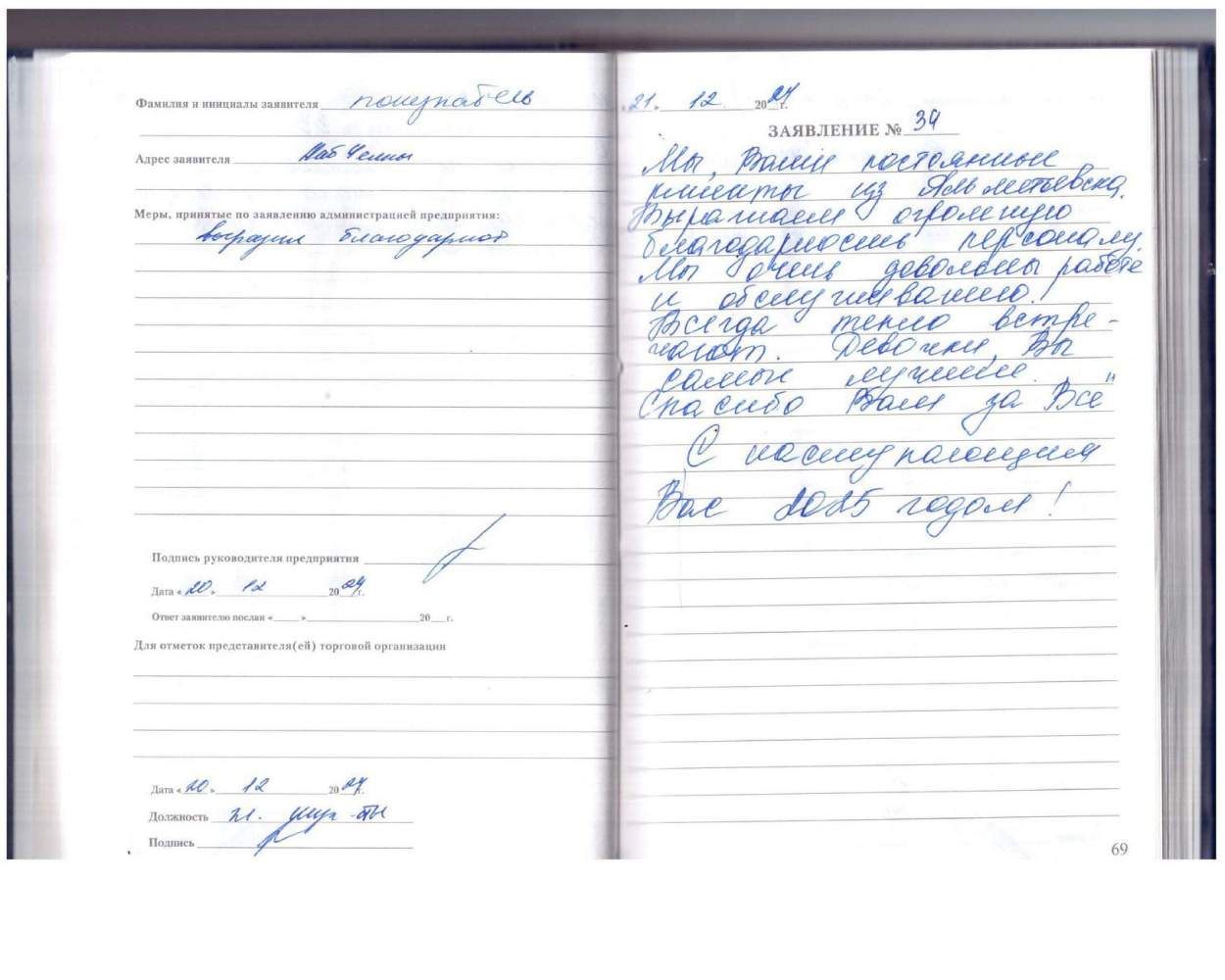 Я ваш постоянный клиент. Выражаю огромную благодарность. За вежливое обслуживание.