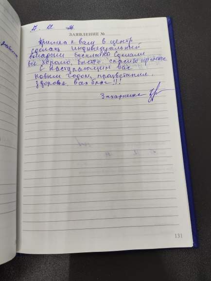 Благодарим за грамотное обслуживание и вежливое обращение. Хороший персонал центра.