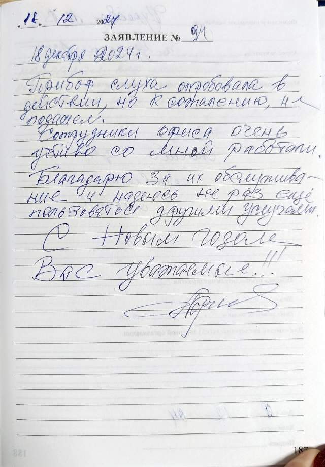 Спасибо большое сотрудникам "Академии Слуха" за чуткое и внимательное отношение. Провели подробную консультацию. Желаю всем здоровья и боагополучия. С Наступающим Новым Годом.