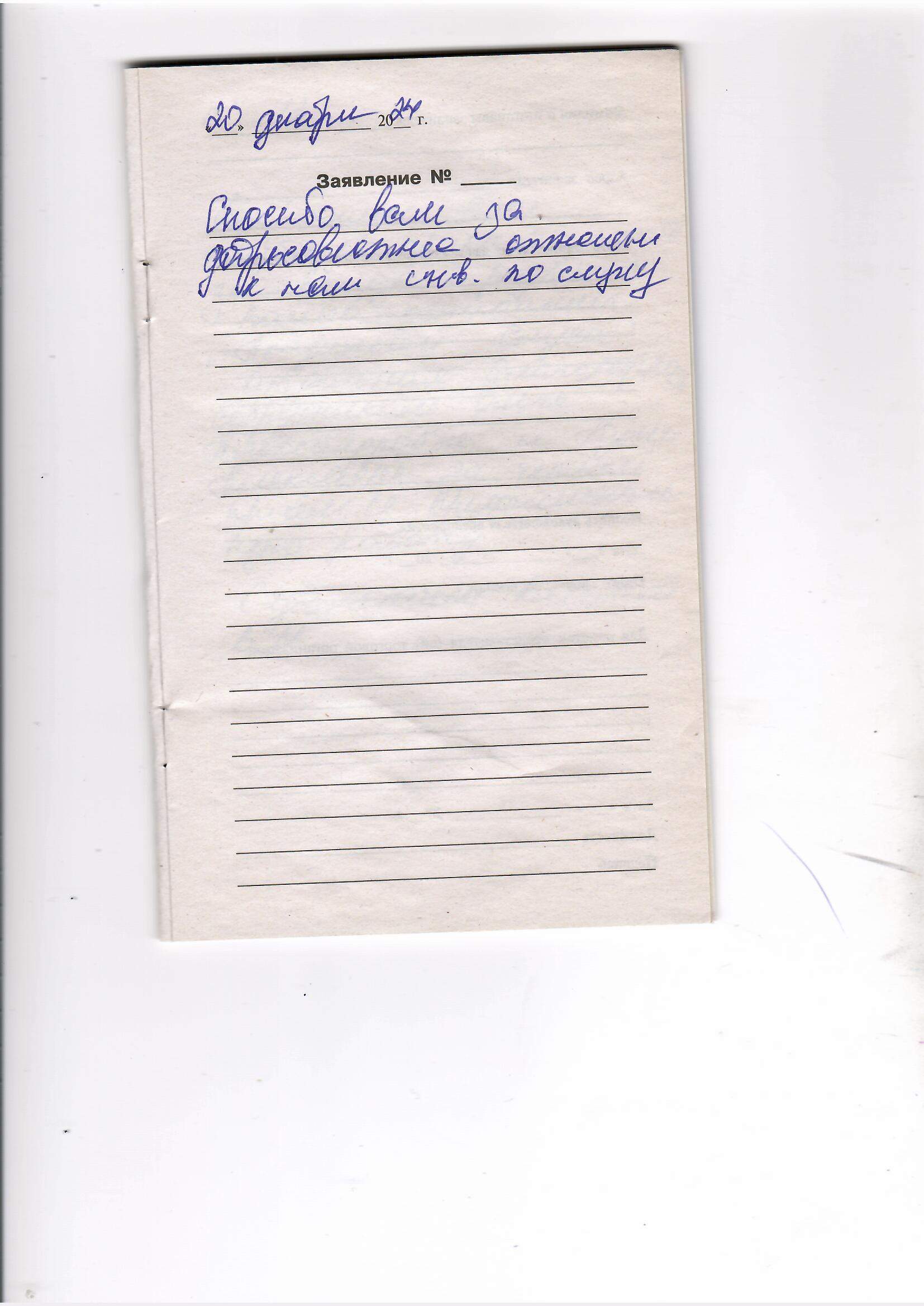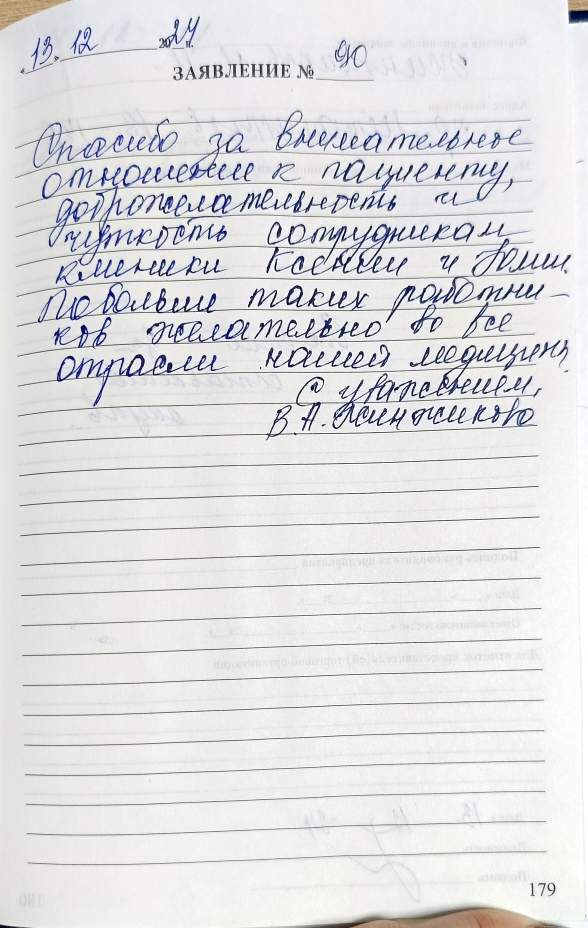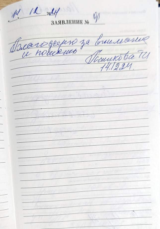 Благодарность от родственницы Гудзь Натальи Геннадьевны.