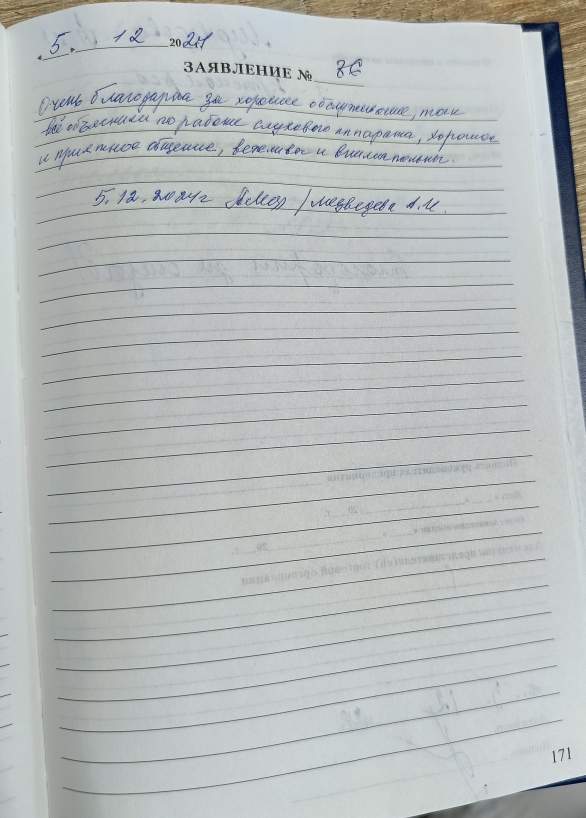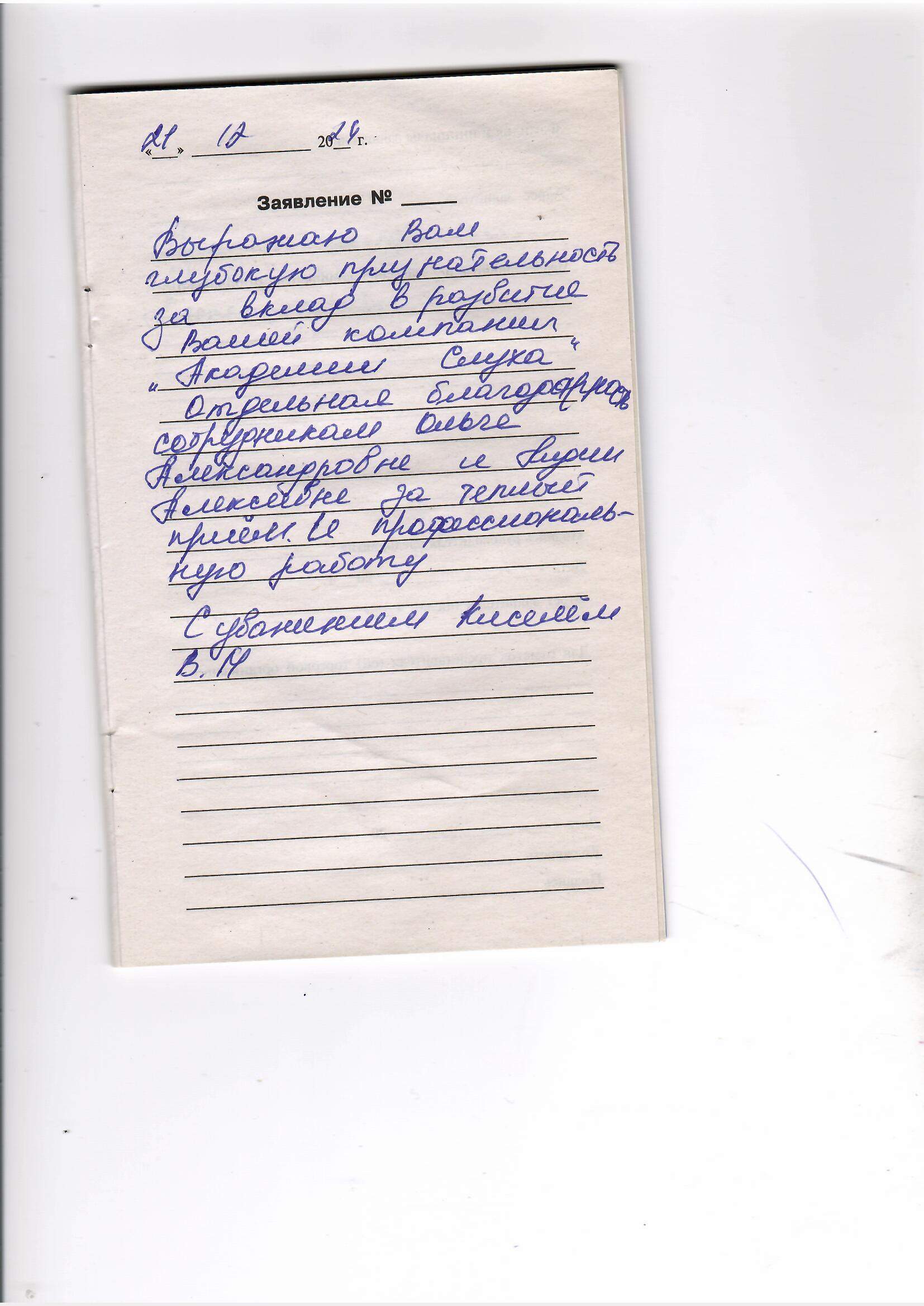 Выражаю вам глубокую признательность за вклад в развитие вашей компании "академия слуха" Отдельная благодарность сотрудникам Ольге Александровне и Лидии Алексеевне за теплый преим. И профессиональную работу