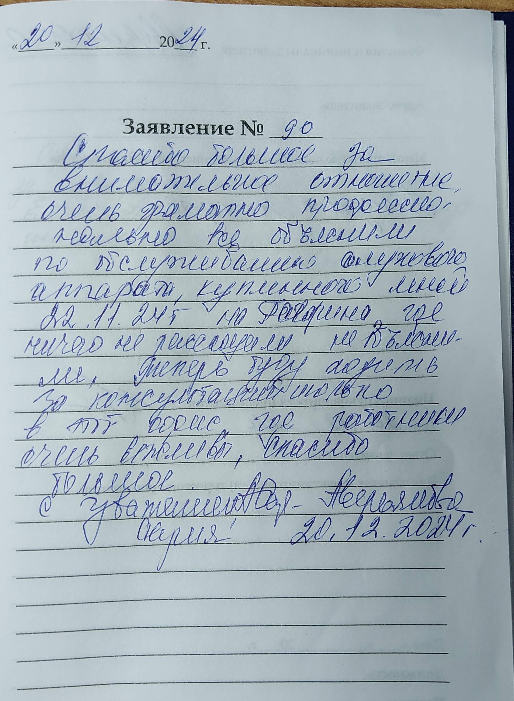 Очень благодарны!!! Все четко рассказали, показали, настроили. Бабушка наша осталась довольна 16.12.2024