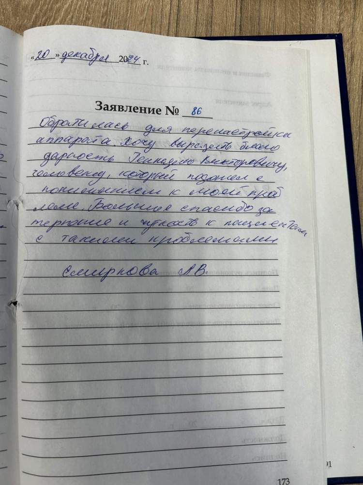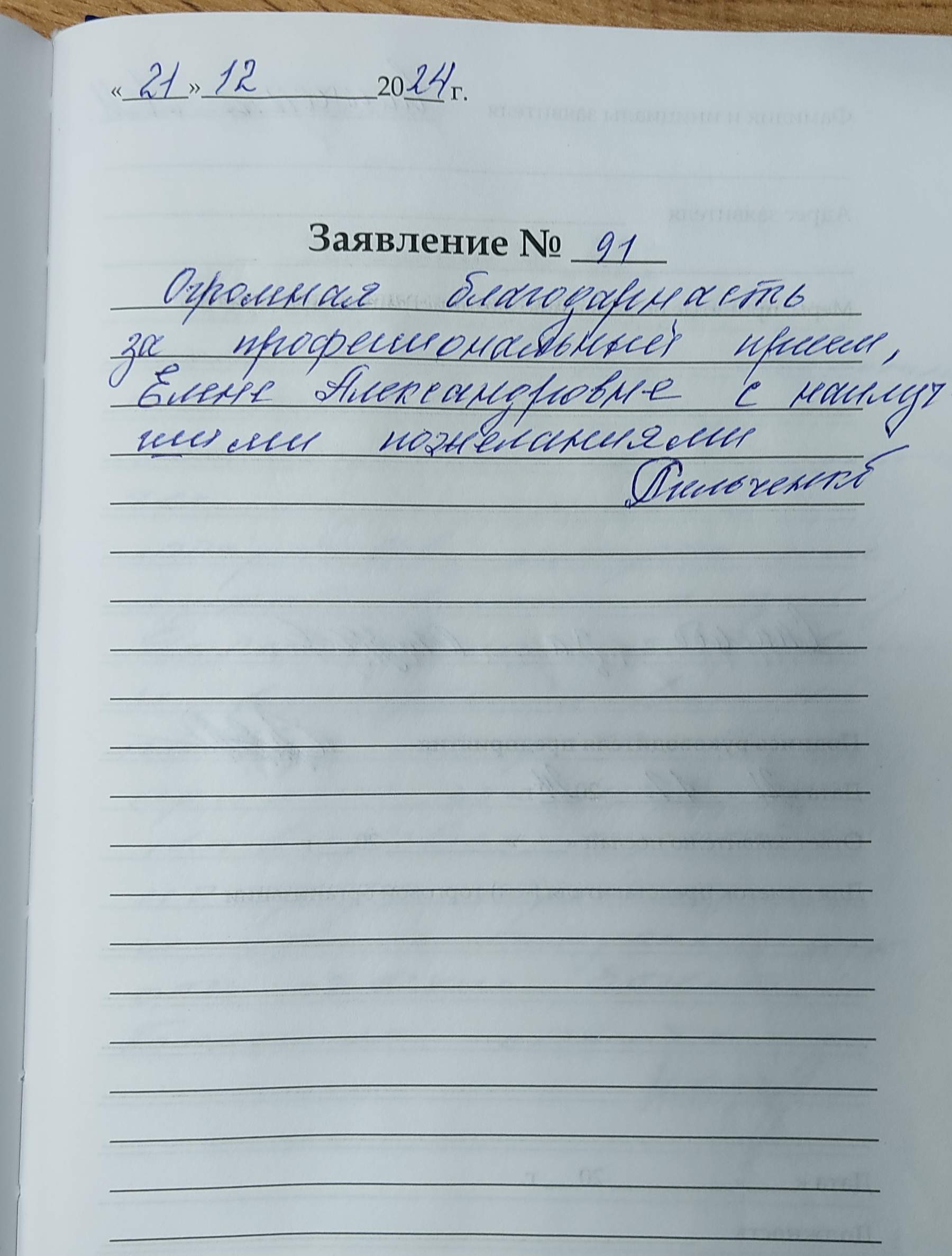 Ильина Галина Александровна Большая благодарность сотрудникам за доброту и внимание 06.12.2024 г