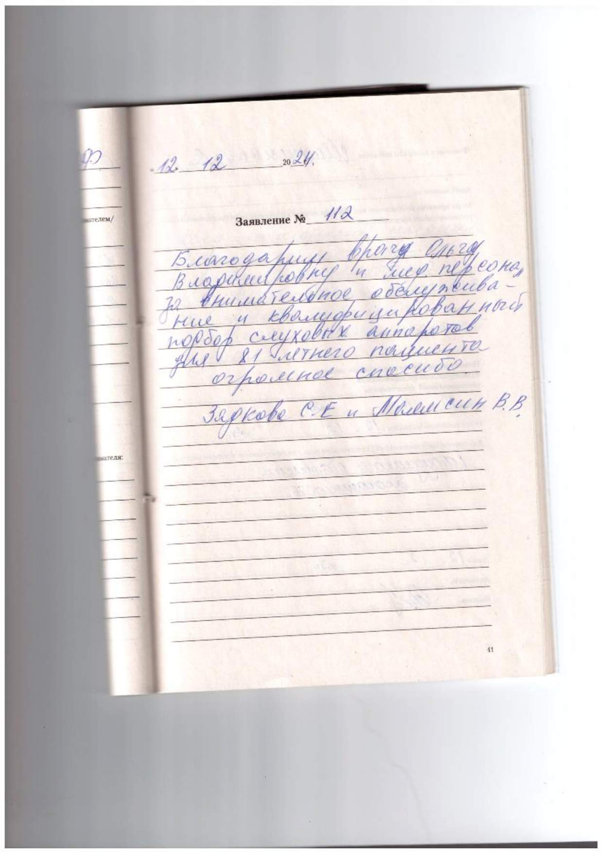 Благодарим врача Ольгу Владимировну и мед.персонал за внимательное обслуживание и квалифицированный подбор слуховых аппаратов для 81 летнего пациента огромное спасибо. Зядкова С.Е и Маямсин В.В.
