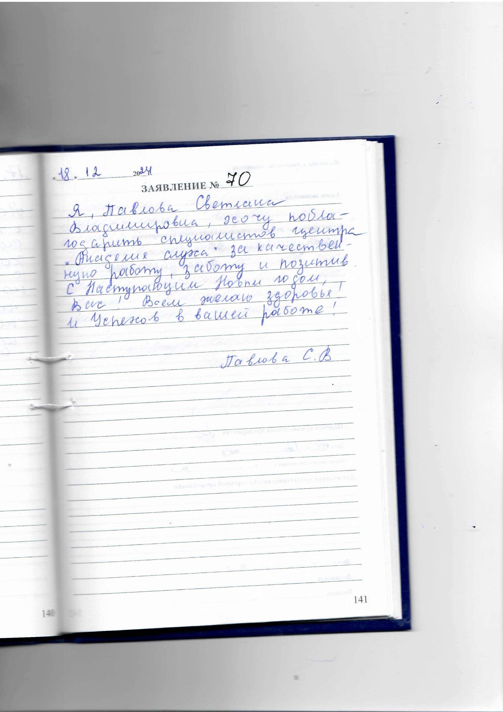 Я, Павлова Светлана Владимировна, хочу поблагодарить специалистов центра "Академия слуха" за качественную работу, заботу и позитив. С наступающим Новым годом, Вас! Всем желаю здоровья и Успехов в вашей работе!