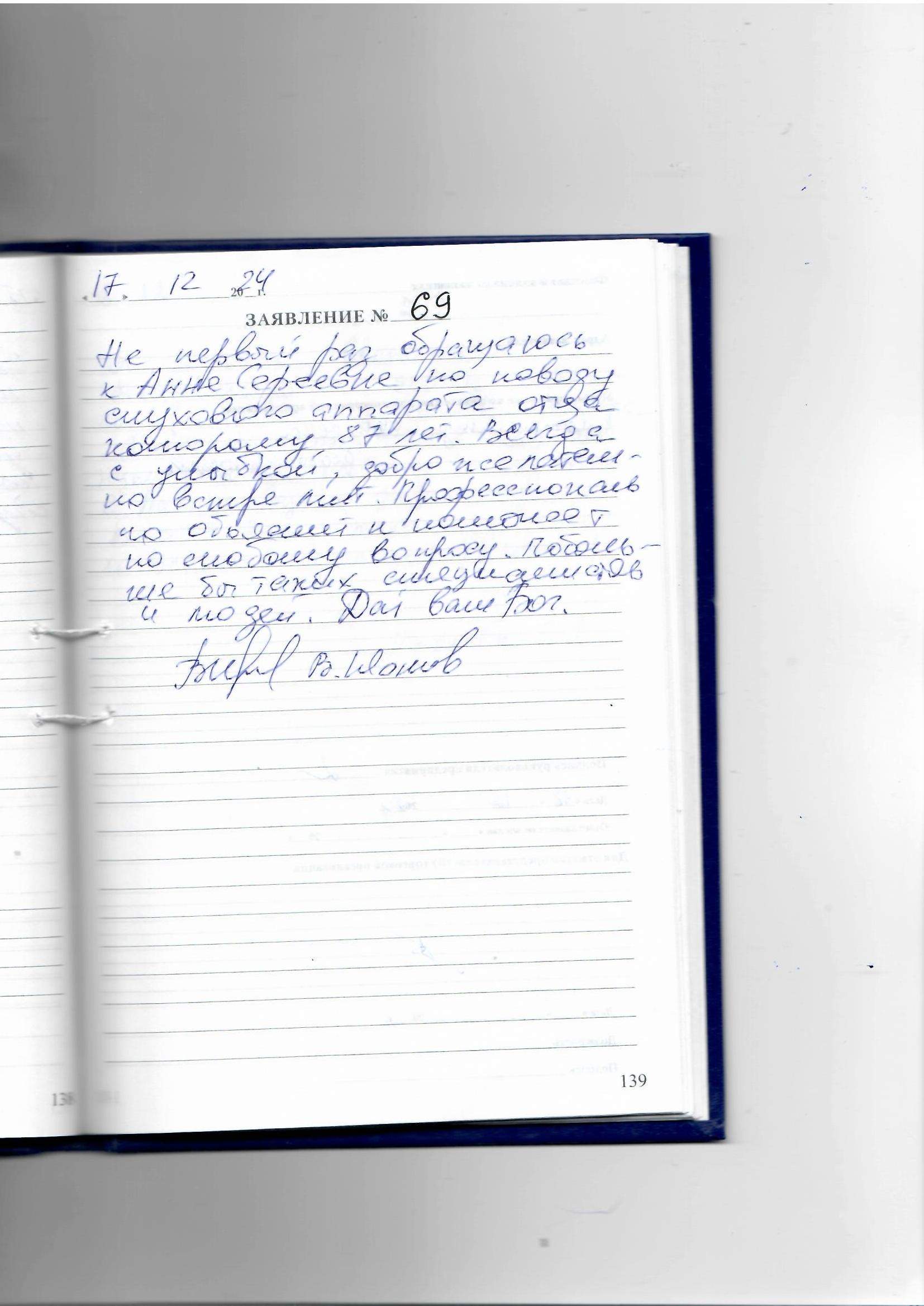 Я, Ван Нина Георгиевна, Впервые обратилась в академию слуха, обслуга отличная, даже неохота от вас уходить. Я очень довольна. Приду в следующий раз в январе НГ.