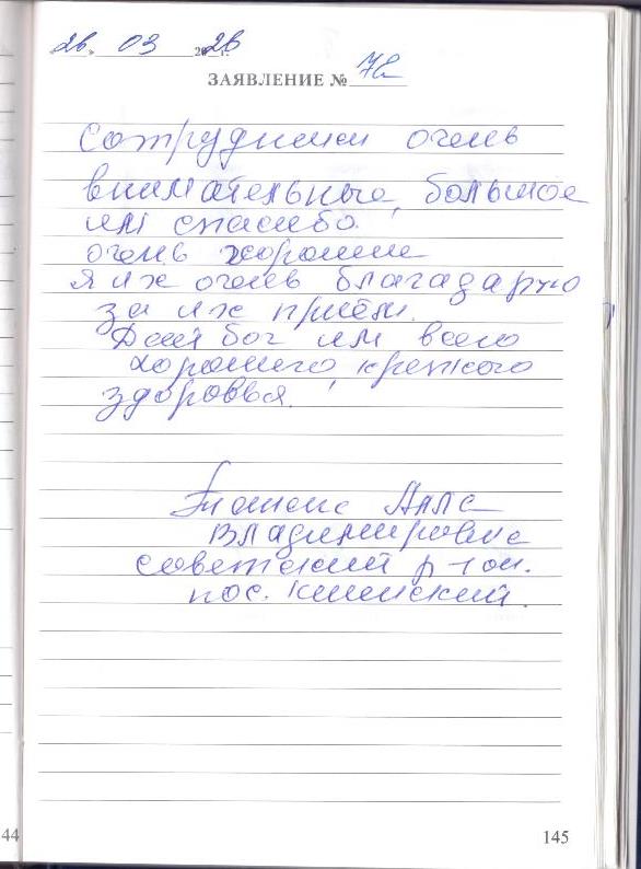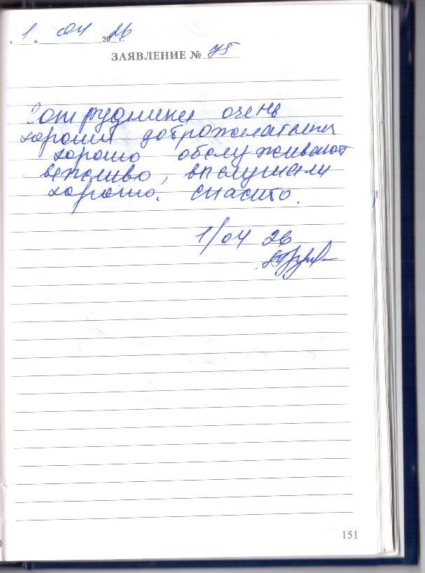 Сотрудники очень внимательные, большое им спасибо. Очень хорошие. Я их очень благодарю за их прием. Дай Бог им всего хорошего, крепкого здоровья.