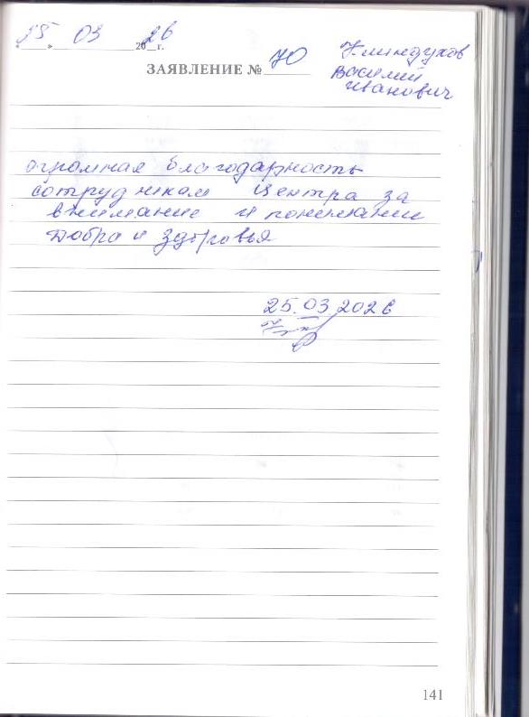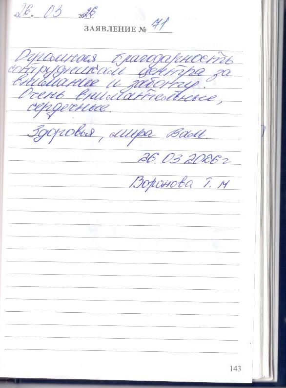 Огромная благодарность сотрудникам центра за внимание и заботу. Очень внимательные, сердечные. Здоровья, мира Вам.