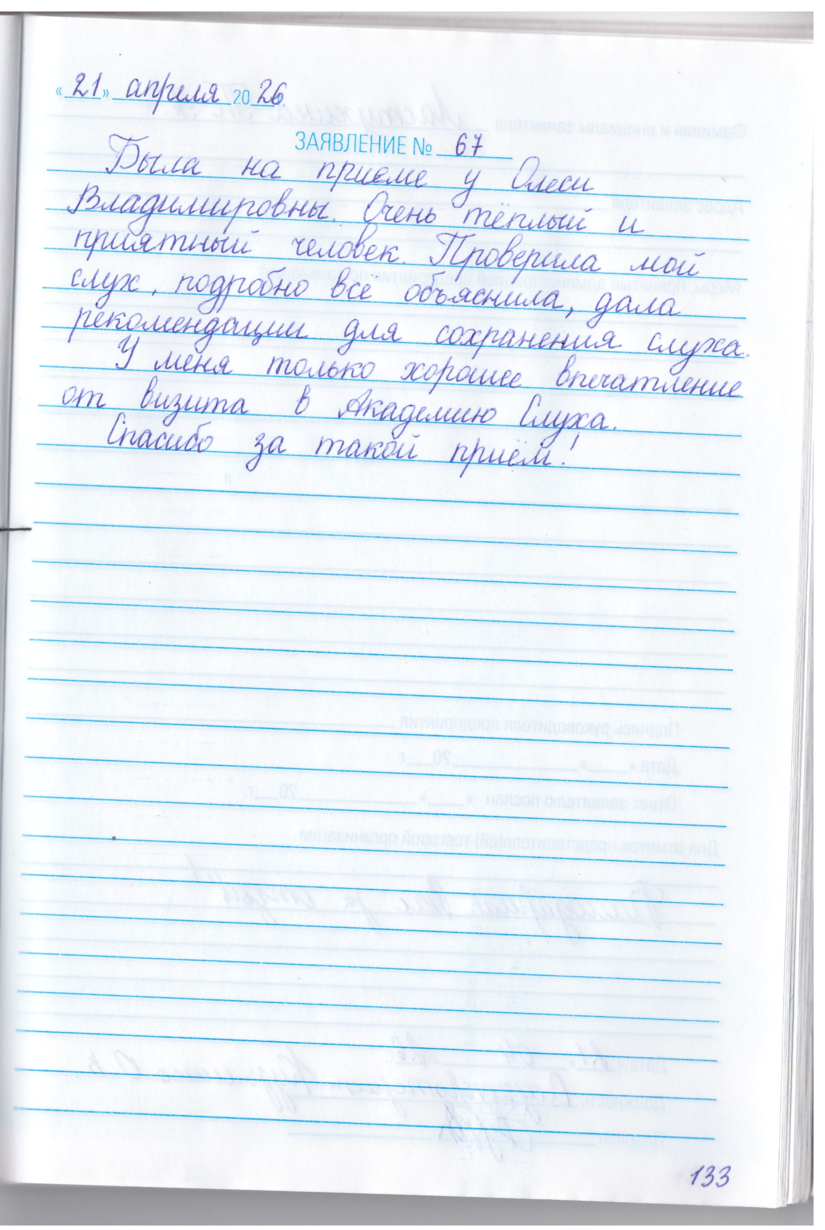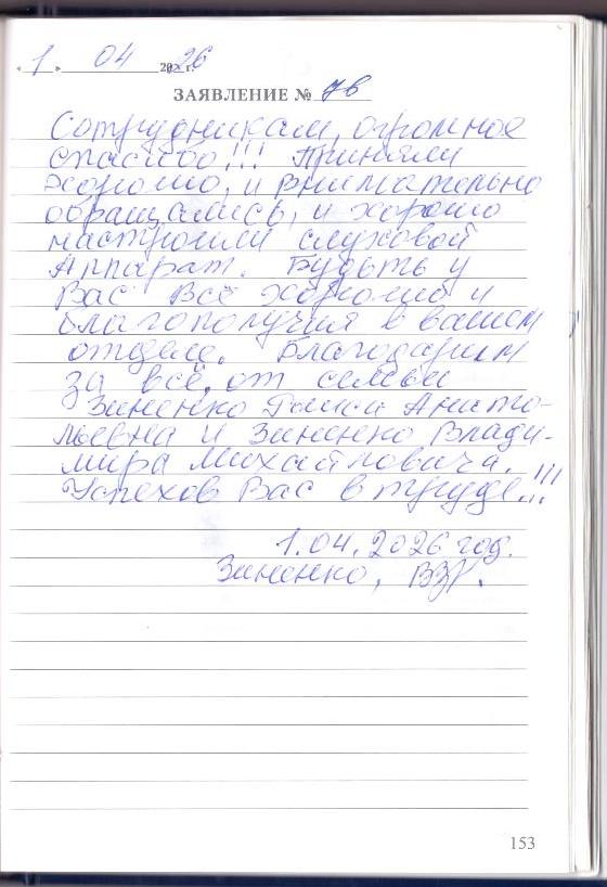 Сотрудникам огромное спасибо!!! Приняли хорошо, и внимательно обращались, и хорошо настроили слуховой аппарат. Пусть будет у Вас все хорошо, благополучия в вашем отделе. Благодарим за все, от семьи Зиненко Раисы Анатольевны и Зиненко Владимира Михайловича. Успехов Вам в труде!!!