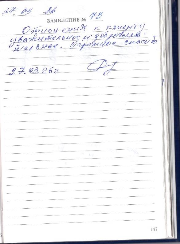 Отношение к клиенту уважительное и доброжелательное. Огромное спасибо.