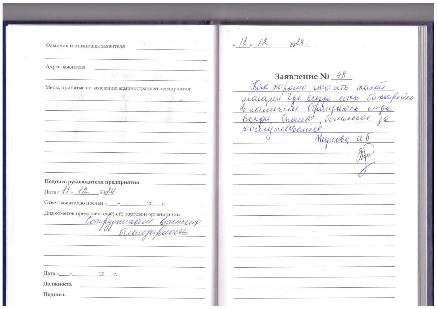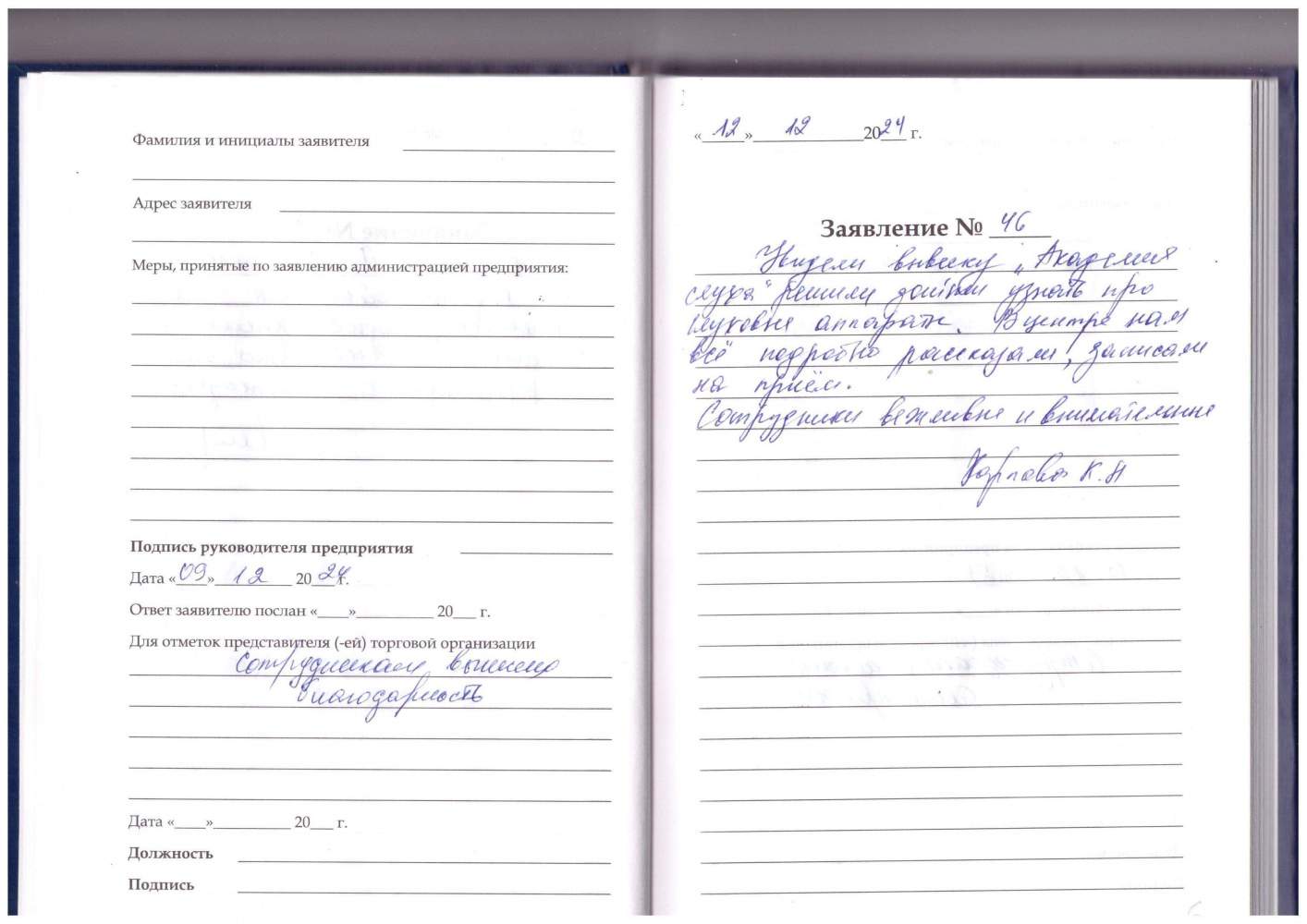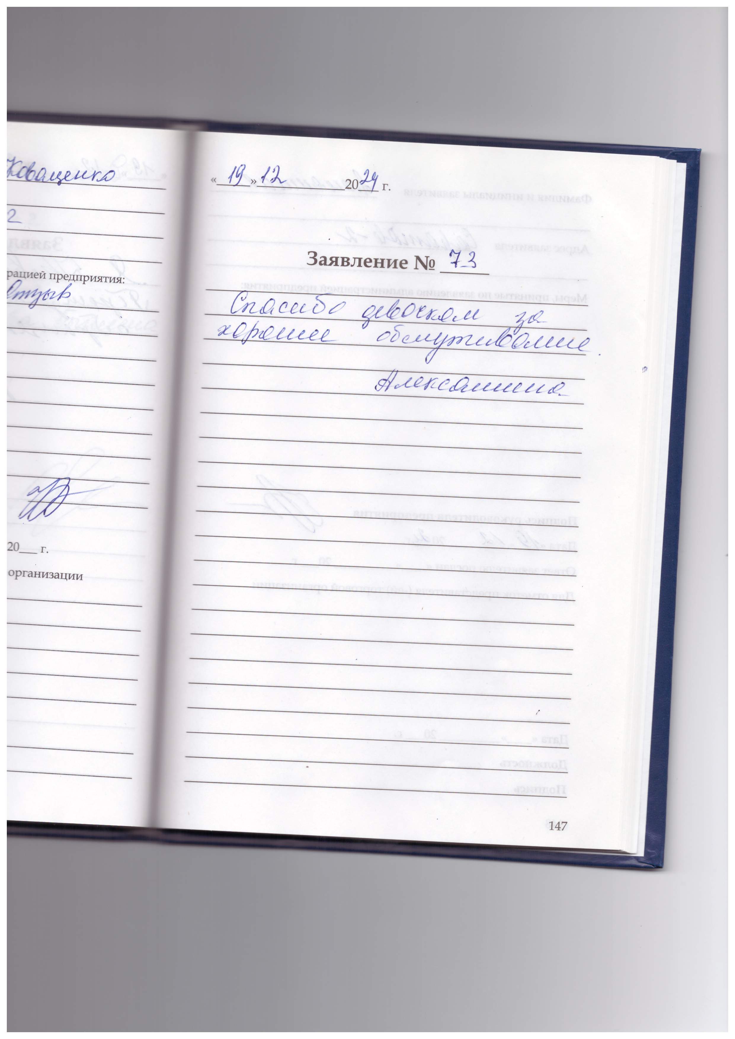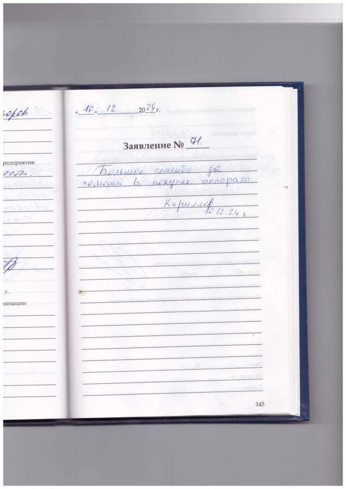 Я, Устюшина Валентина Михайловна, благодарна за прием и обслуживание сотрудника центра Виденеевой Н.Р.
