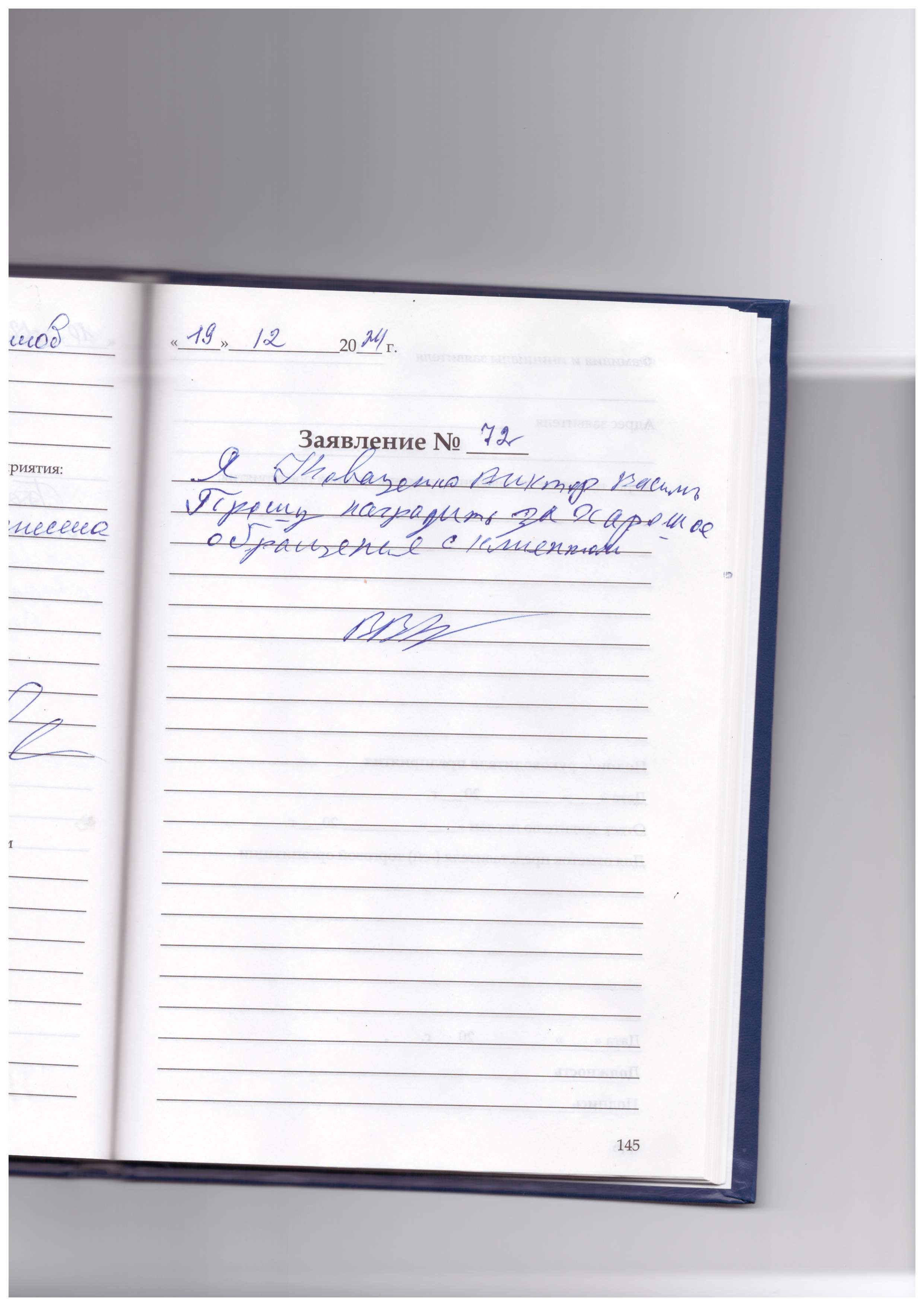 Я , Коваценко Виктор Васильевич прошу наградить за хорошее обращение с клиентом.