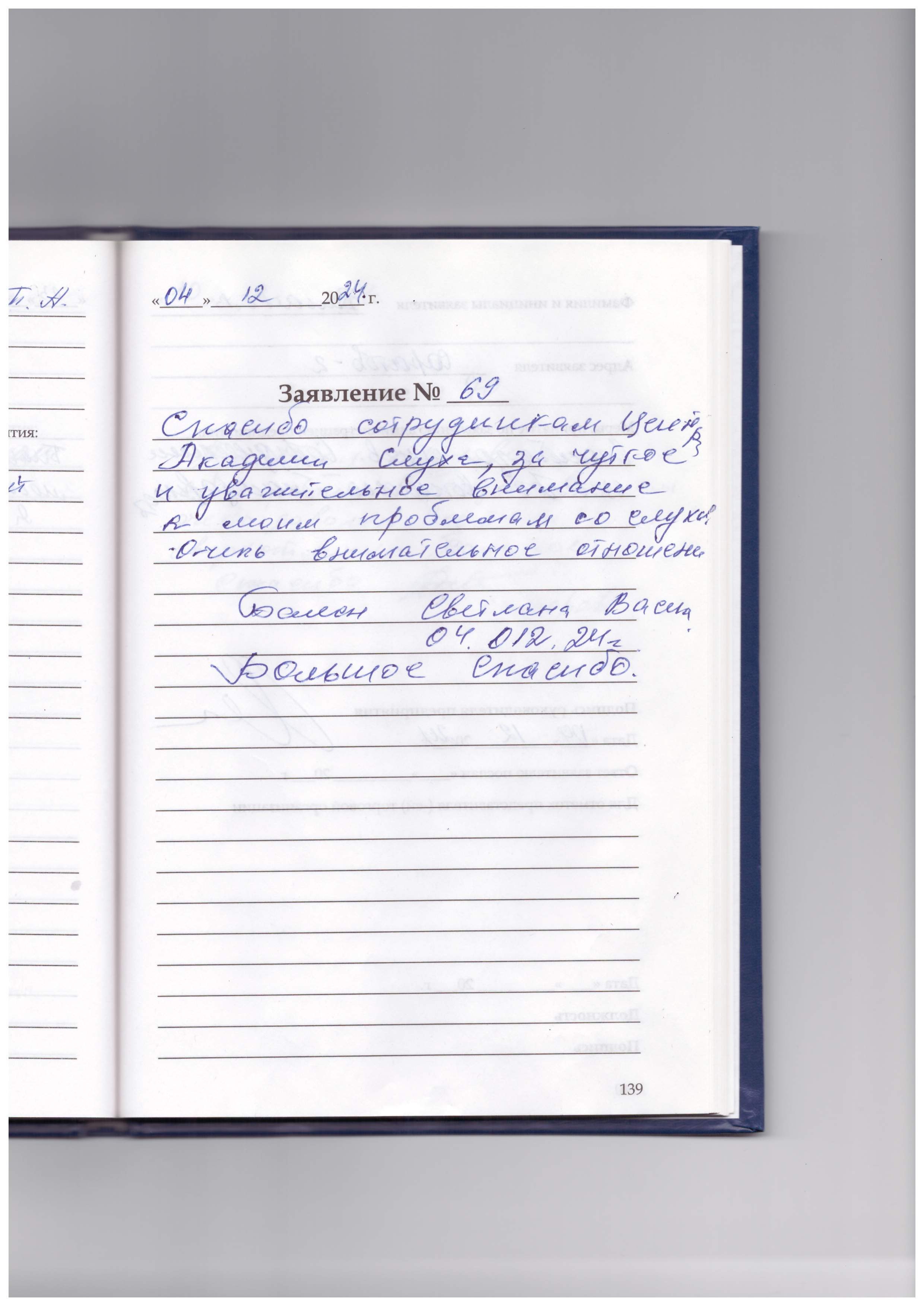 Спасибо сотрудникам центра Академии слуха, за чуткое и уважительное внимание к моим проблемам со слухом .Очень внимательное отношение. Балан Светлана Васильевна. 04.12.24г Большое спасибо.
