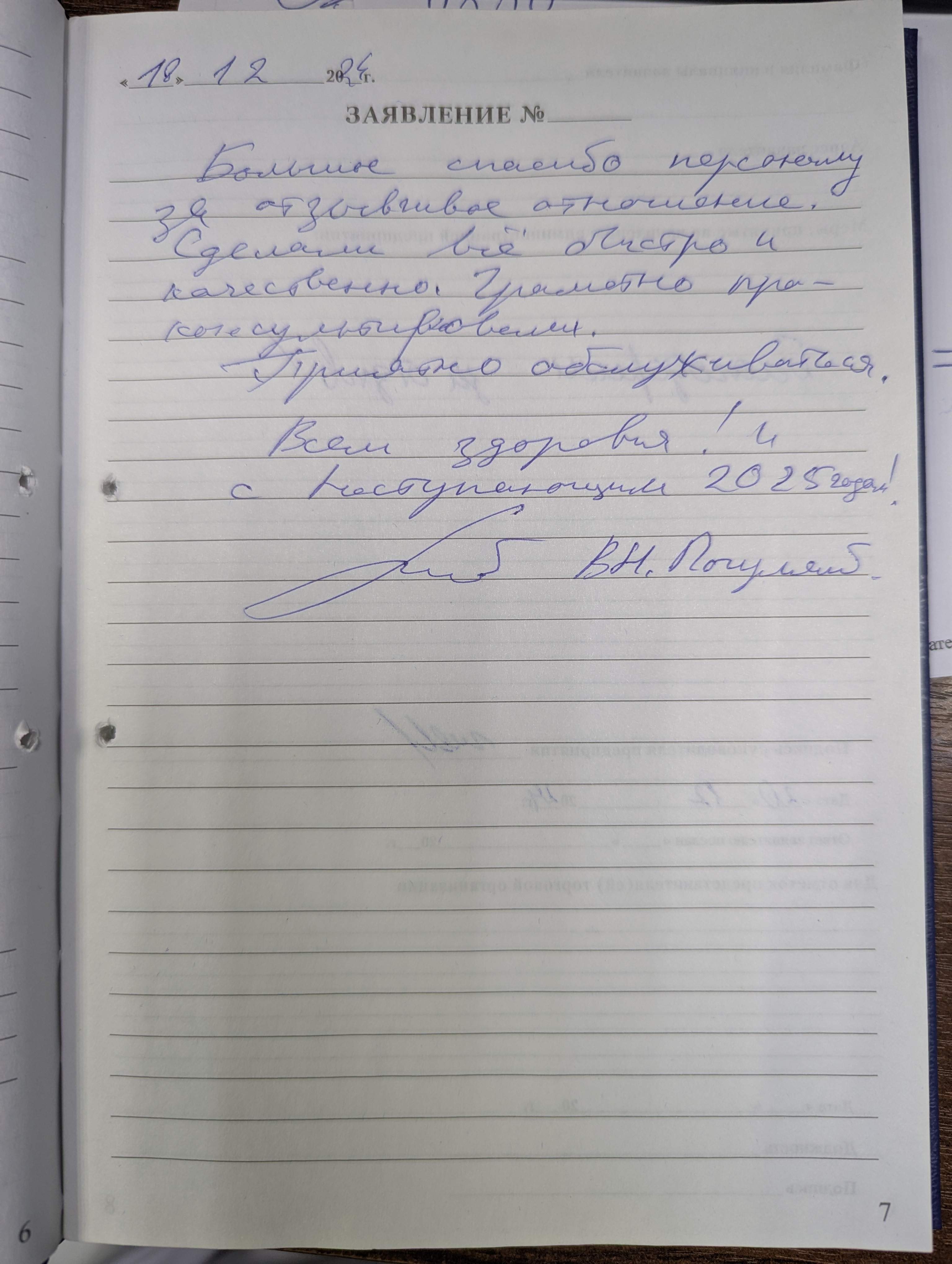 Большое спасибо персоналу за отзывчивое отношение. Сделали всё быстро и качественно. Грамотно проконсультировали. Приятно обслуживаться. Всем здоровья! И с Наступающим 2025 годом!