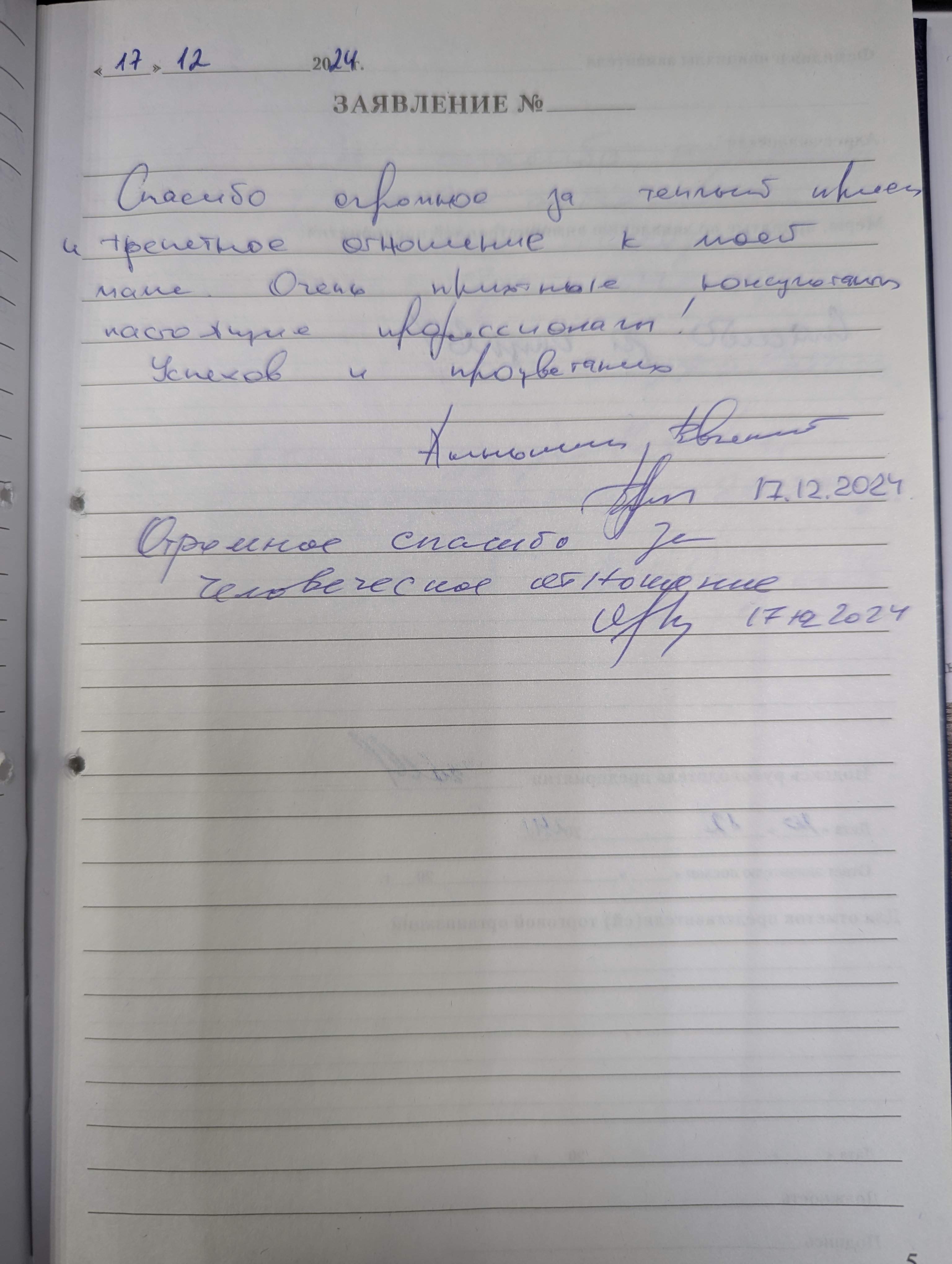 Спасибо огромное за теплый прием и трепетное отношение к моей маме. Очень приятные консультанты, настоящие профессионалы. Успехов и процветания.