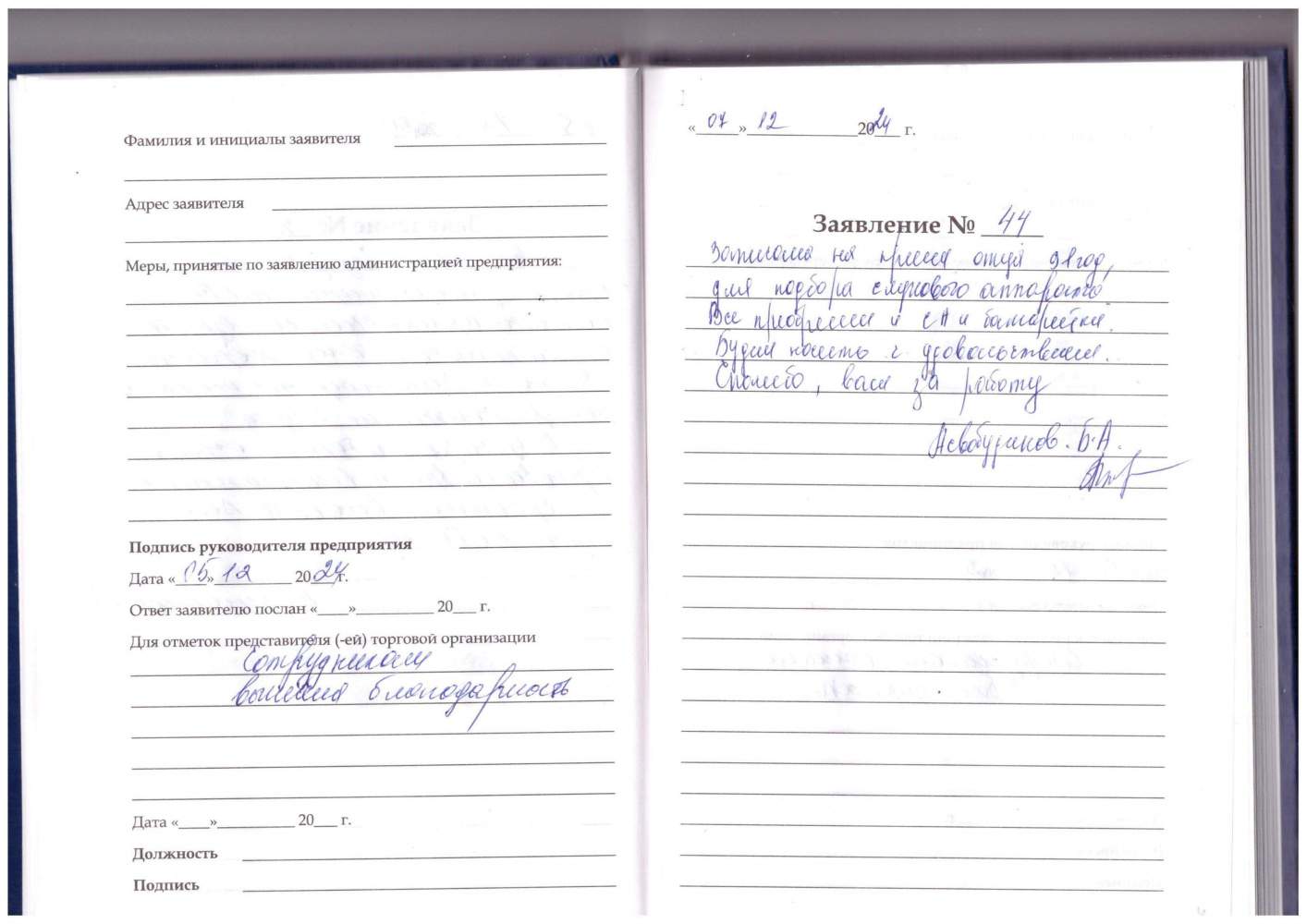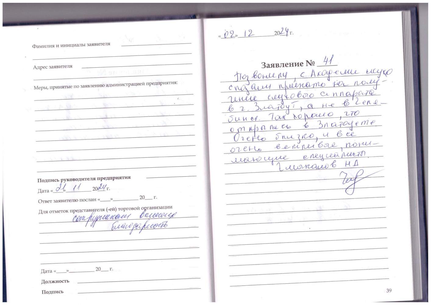 - Заявка на рассрочку