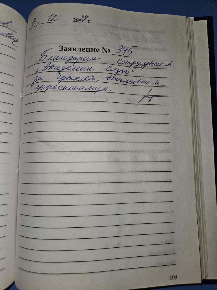 Благодарим сотрудников «Академии Слуха» за чуткость, внимание и профессионализм.
