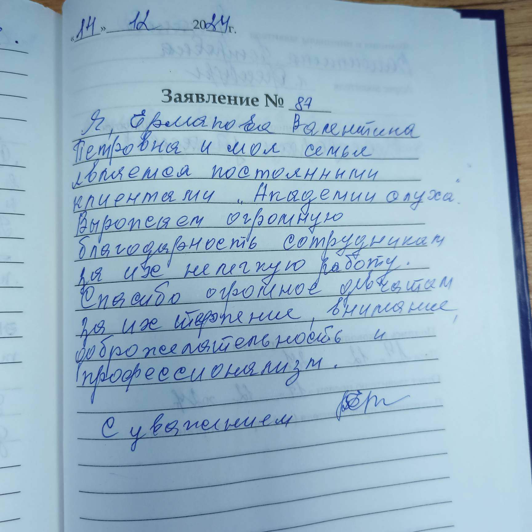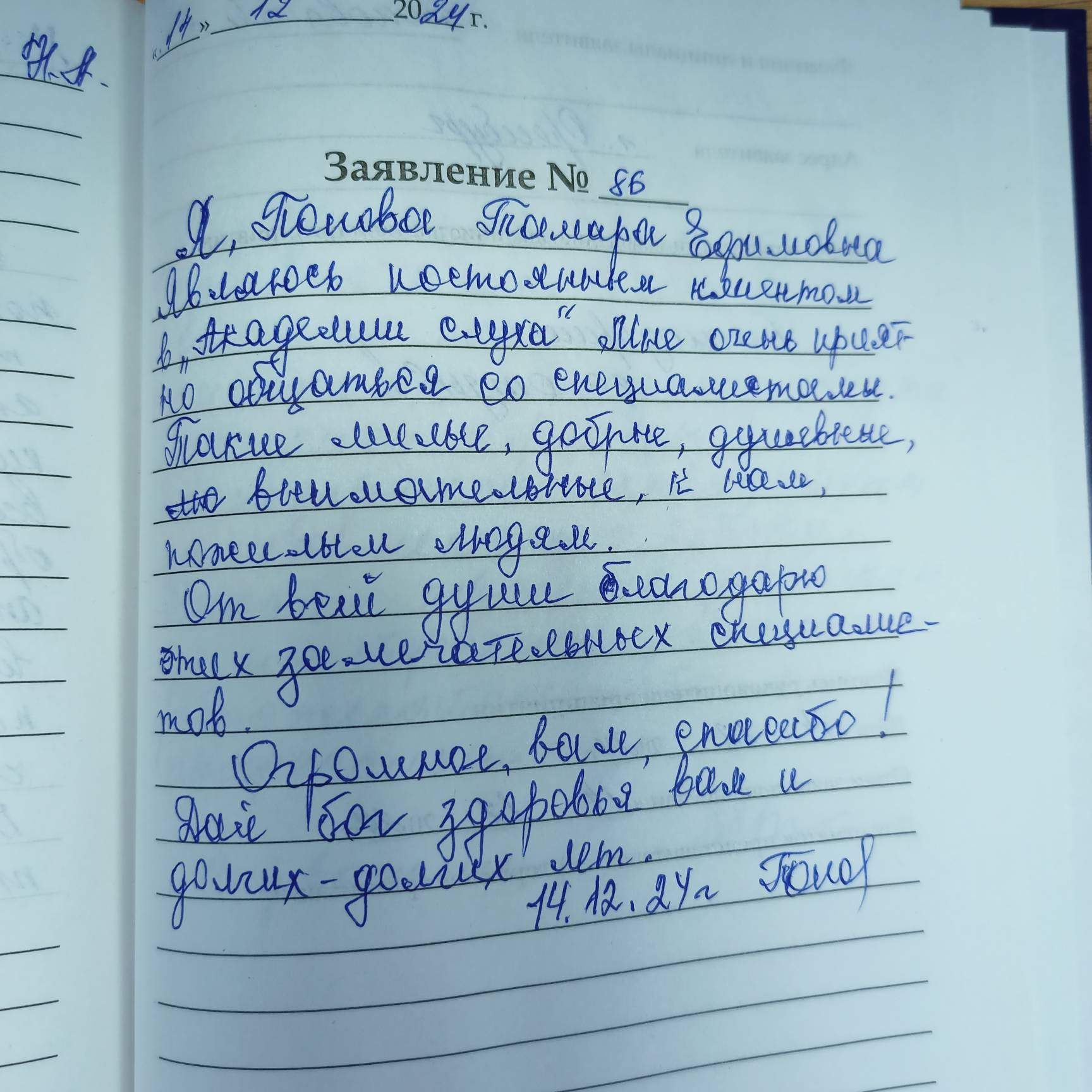 Я, Ермакова Валентина Петровна, и моя семья являемся постоянными клиентами «Академии Слуха». Выражаем огромную благодарность сотрудникам за их нелёгкую работу. Спасибо огромное девчатам за их терпение, внимание, доброжелательность и профессионализм. С уважением!