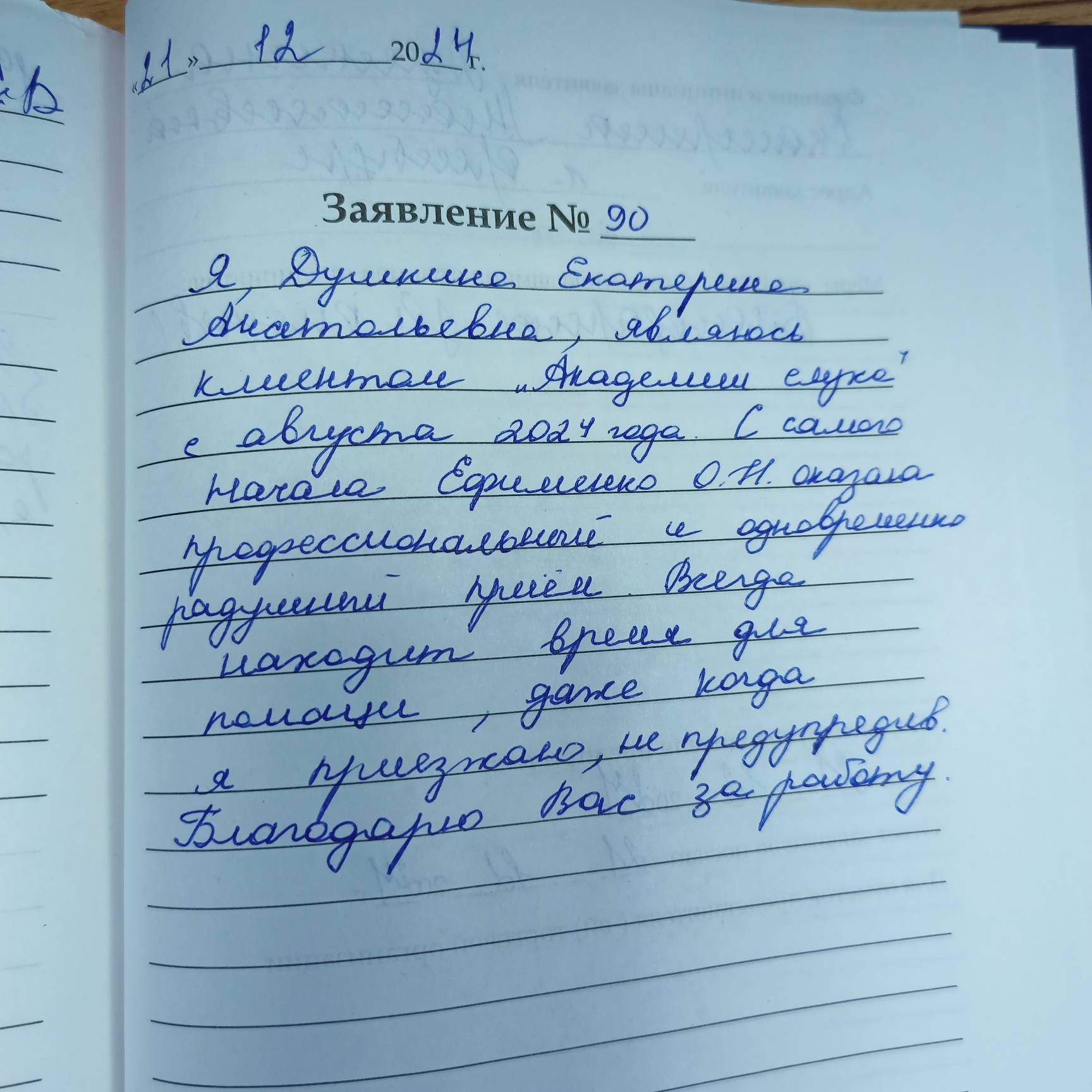 Я, Душкина Екатерина Анатольевна, являюсь клиентом «Академии Слуха» с августа 2024 года. С самого начала Ефименко О.Н. оказала профессиональный и одновременно радушный приём . Всегда находит время для помощи , даже когда я приезжаю непредупредив. Благодарю вас за работу.