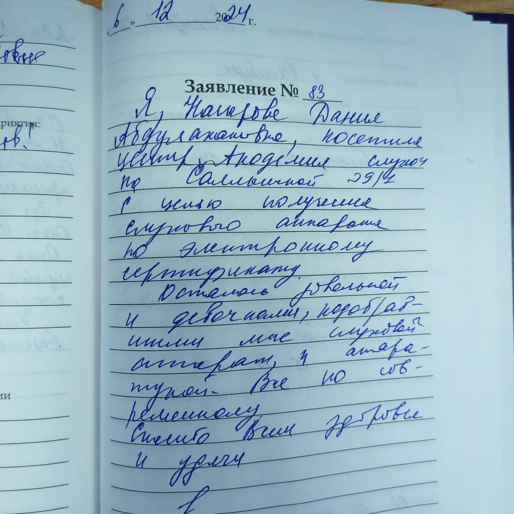 - Заявка на рассрочку