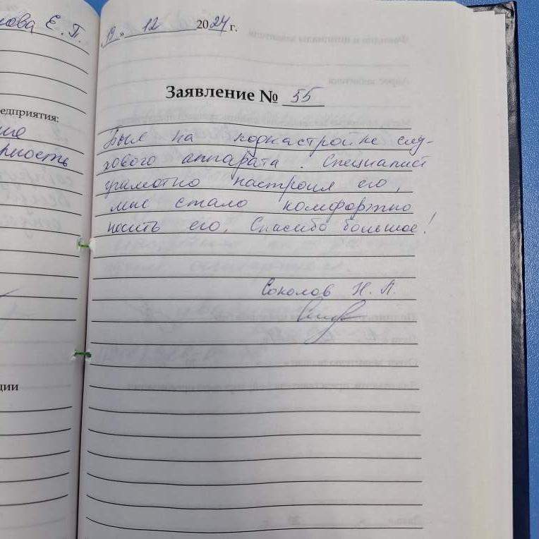 Был на поднастройке слухового аппарата. Специалист грамотно настроил его, мне стало комфортно носить его. Спасибо большое! Соколов Н.А.