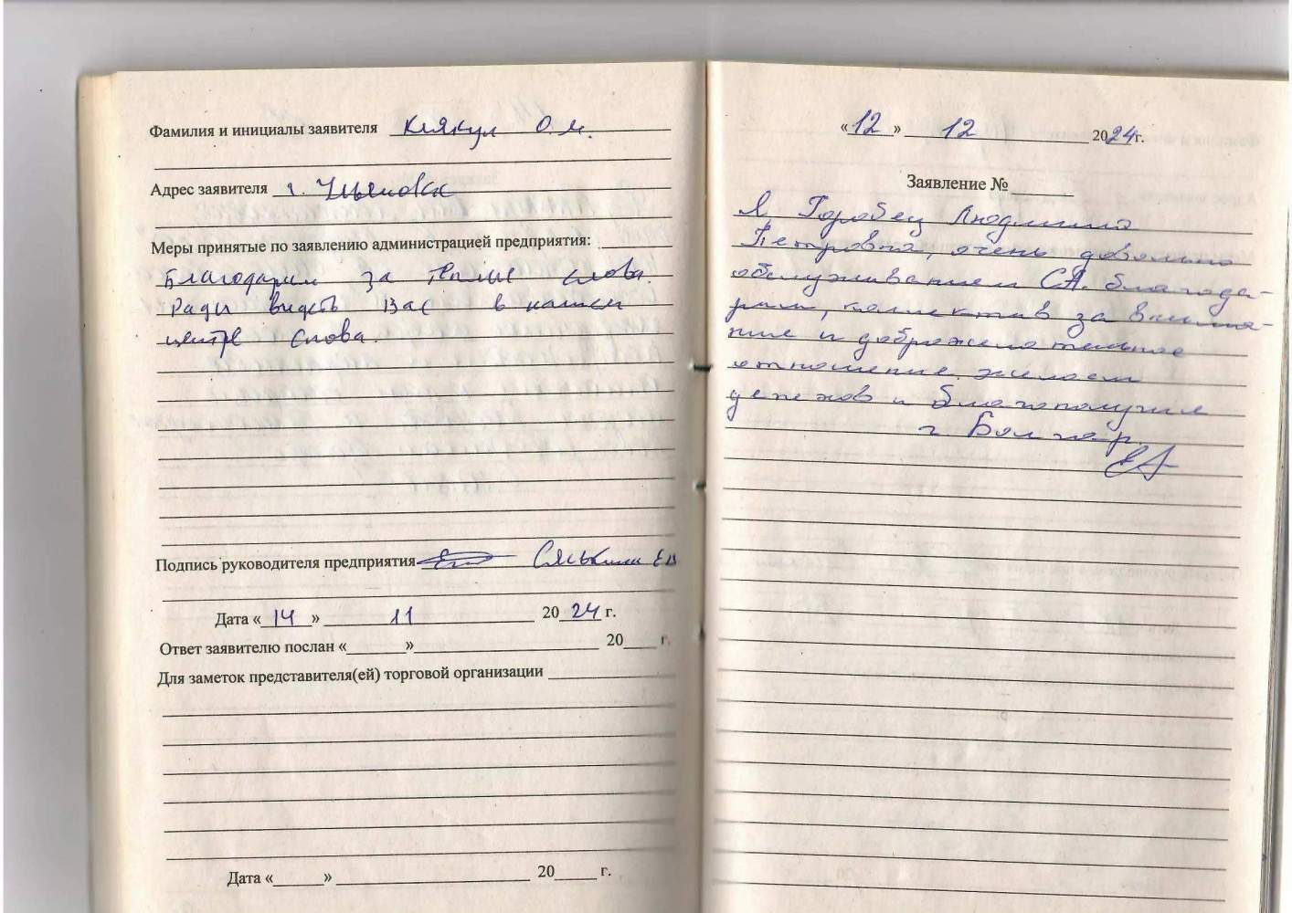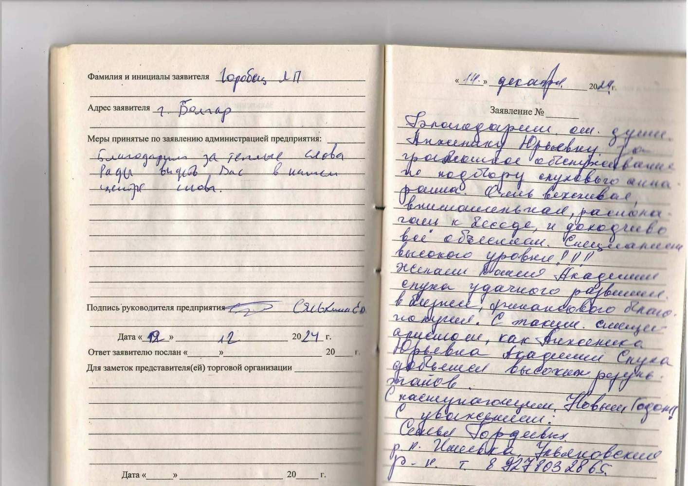 Я, Горобец Людмила Петровна, очень довольна обслуживанием СА. Благодарим коллектив за внимание и доброжелательное отношение. Желаем успехов и благополучия!. г. Болгары.