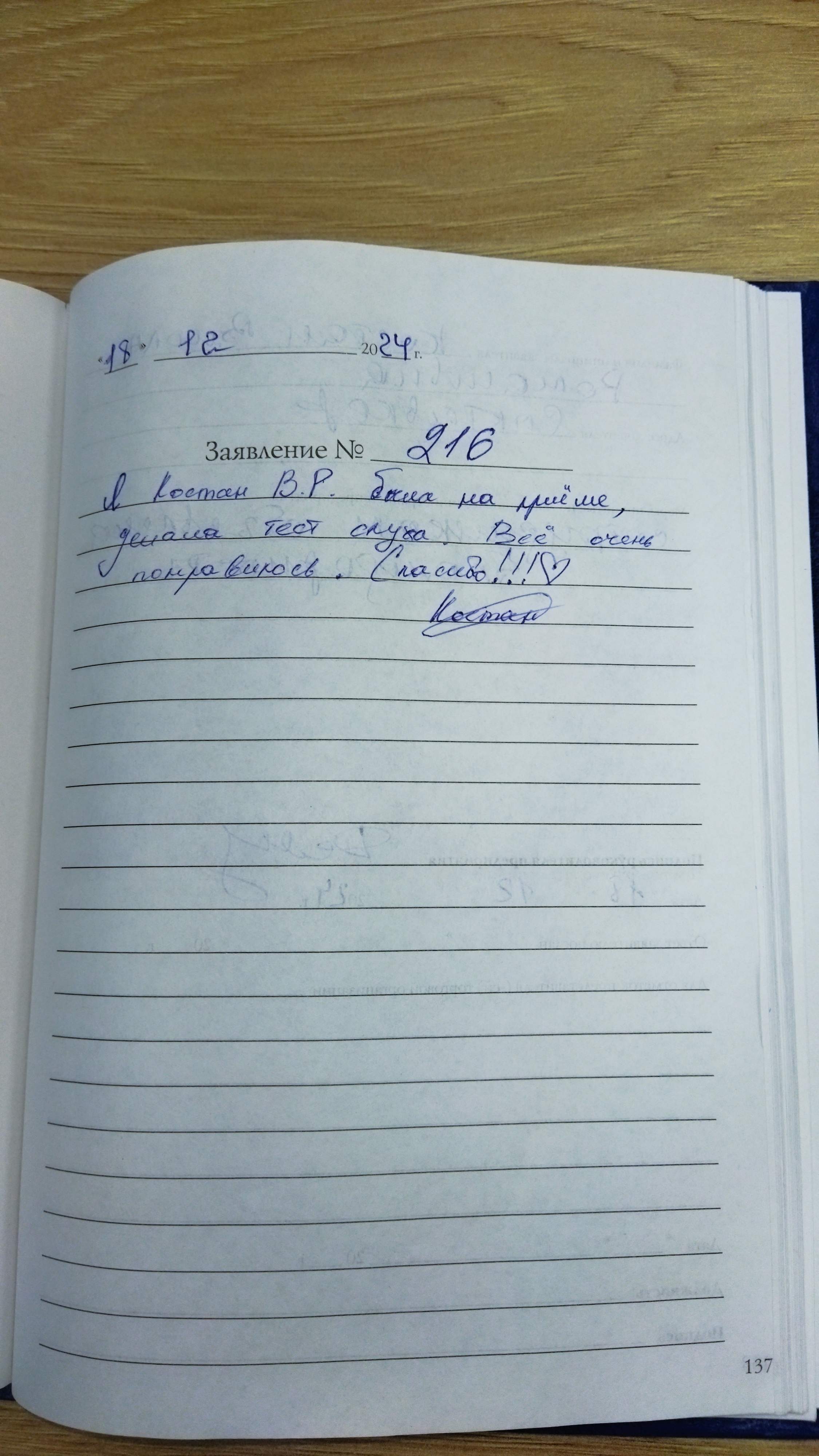 18.12.2024 Я Костан В.Р. была на приеме, делала тест слуха. Все очень понравилось.Спасибо!!!