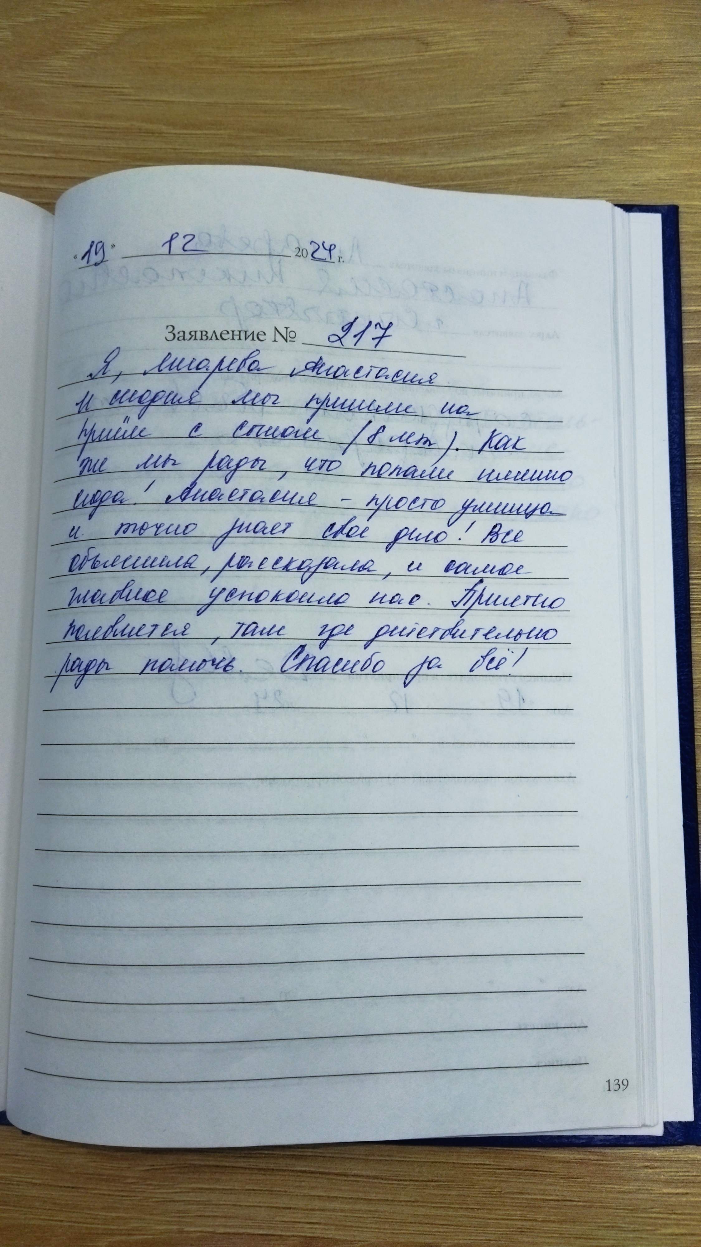 19.12.2024 Я, Лигарева Анастасия и сегодня мы пришли на прием с сыном (8 лет).Как же мы рады, что попали именно сюда! Анастасия - просто умница и точно знает свое дело!Все объяснила,рассказала,и самое главное успокоила нас.Приятно появляться,там где действительно рады помочь.Спасибо за все!
