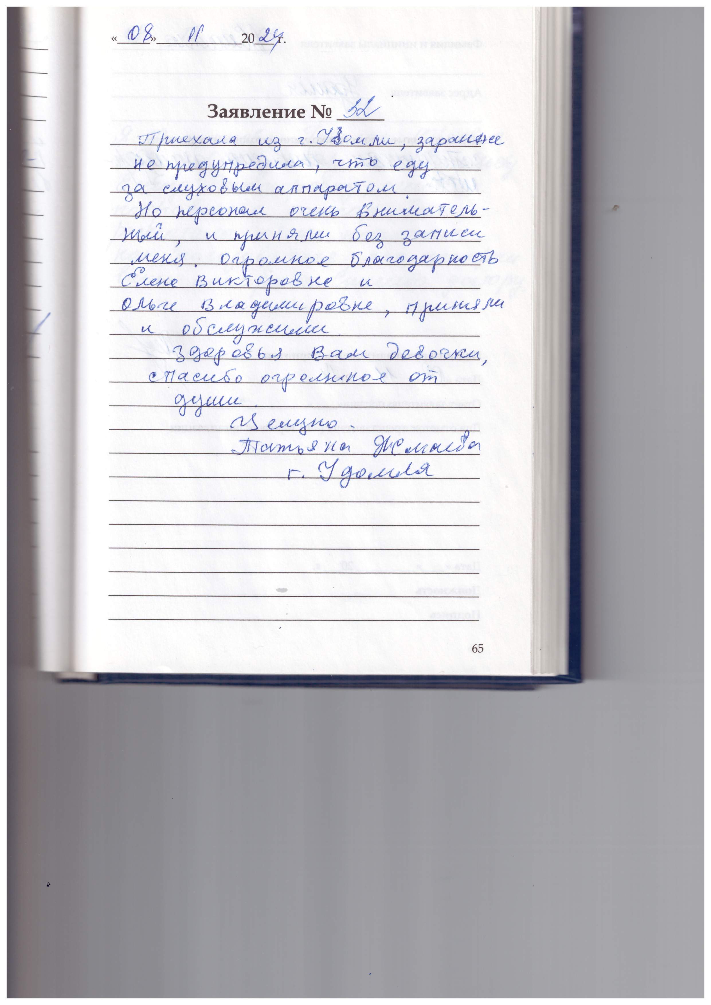 Приехала из г. Удомля, заранее не предупредила, что еду за слуховым апаратом . Но персонал очень внимательный, и приняли без записи меня. Огромная благодарность Елене Викторовне и Ольге Владимировне, приняли и обслужили. Здоровья вам девочки, спасибо огромное от души. Целую Татьяна Жмаева. г. Удомля.