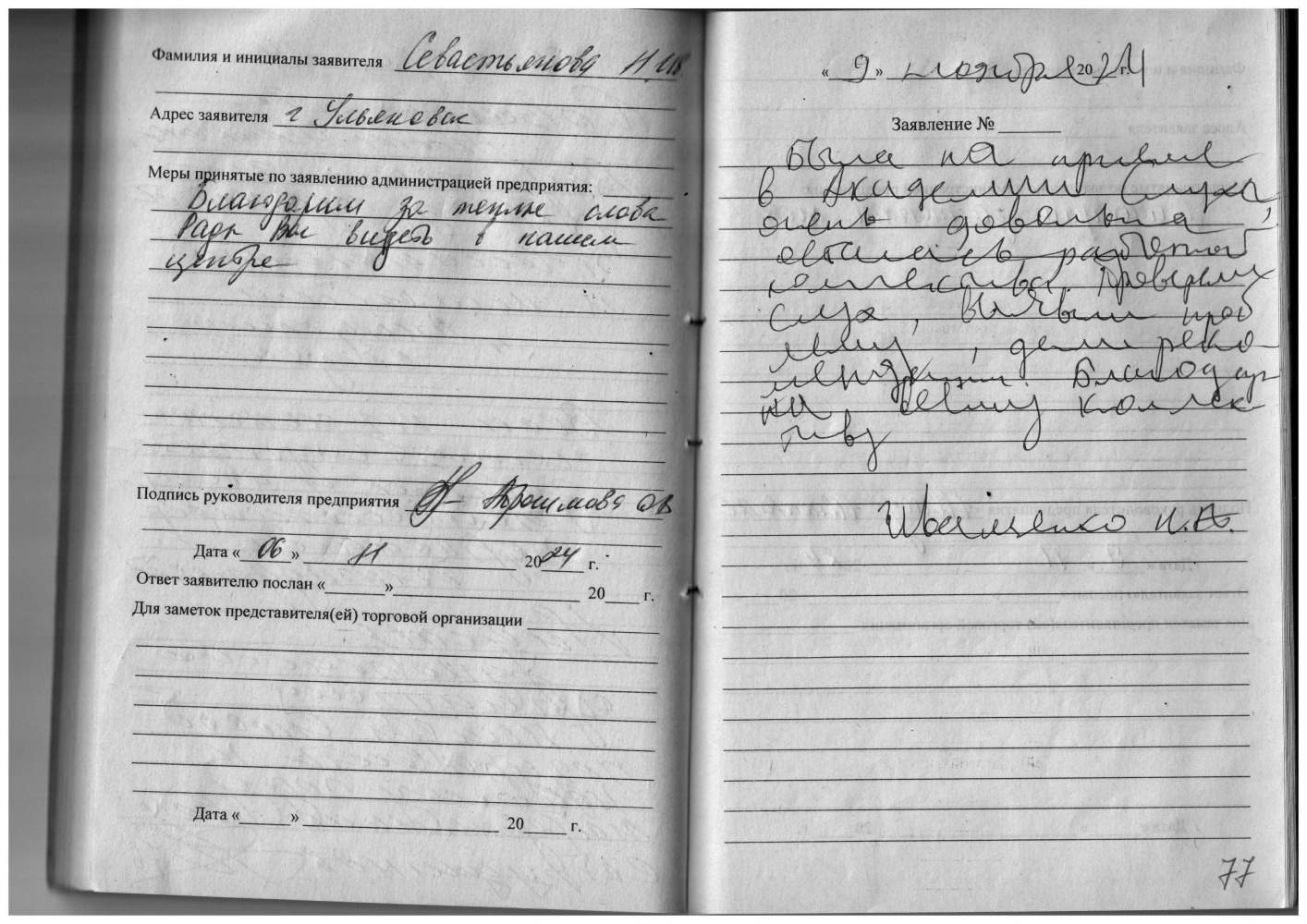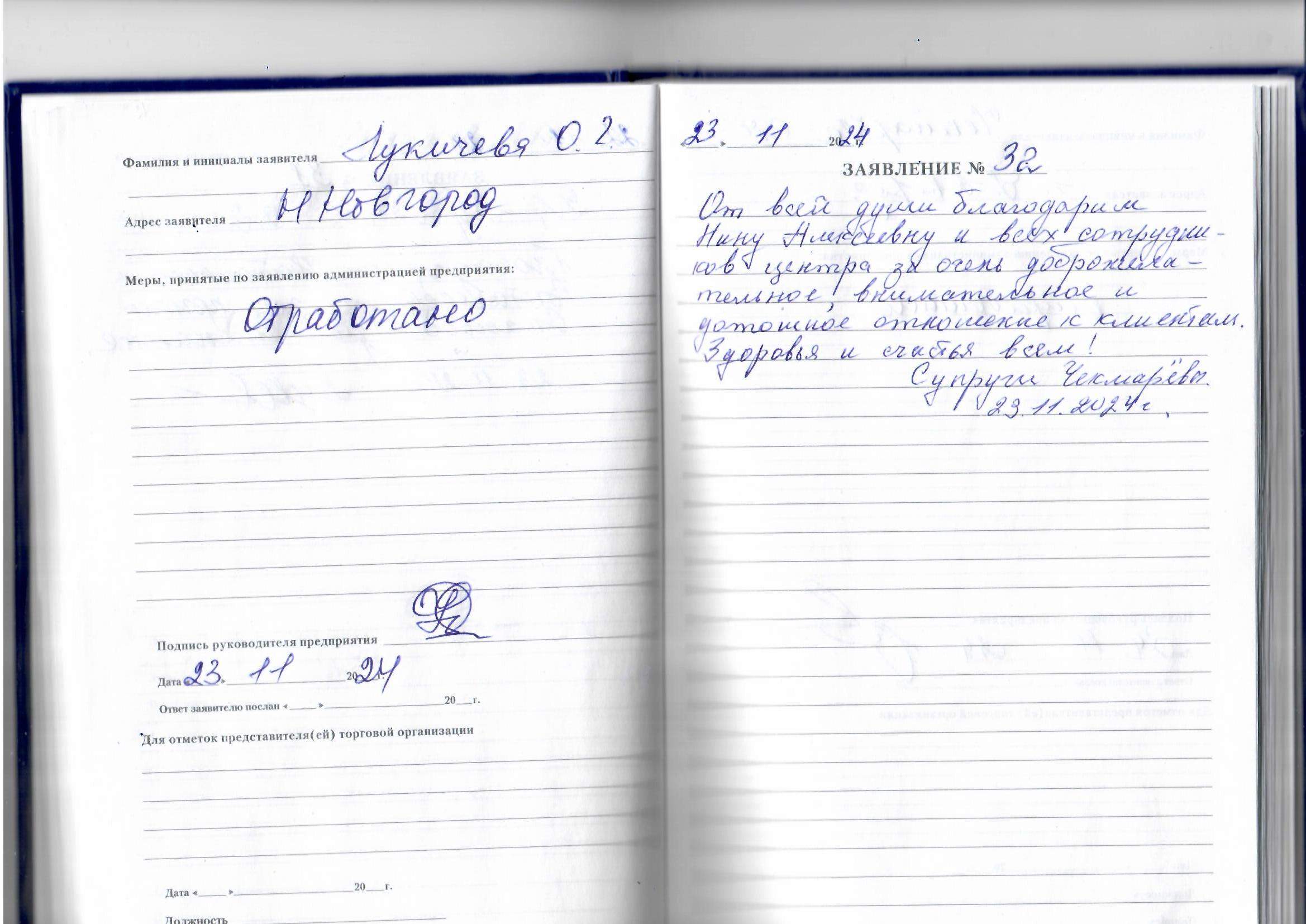 От всей души благодарим Нину Алексеевну и всех сотрудников центра за очень доброжелательное, внимательное и дотошное отношение к клиентам. Здоровья и счастья всем! Супруги Чекмаревы 23.11.2024