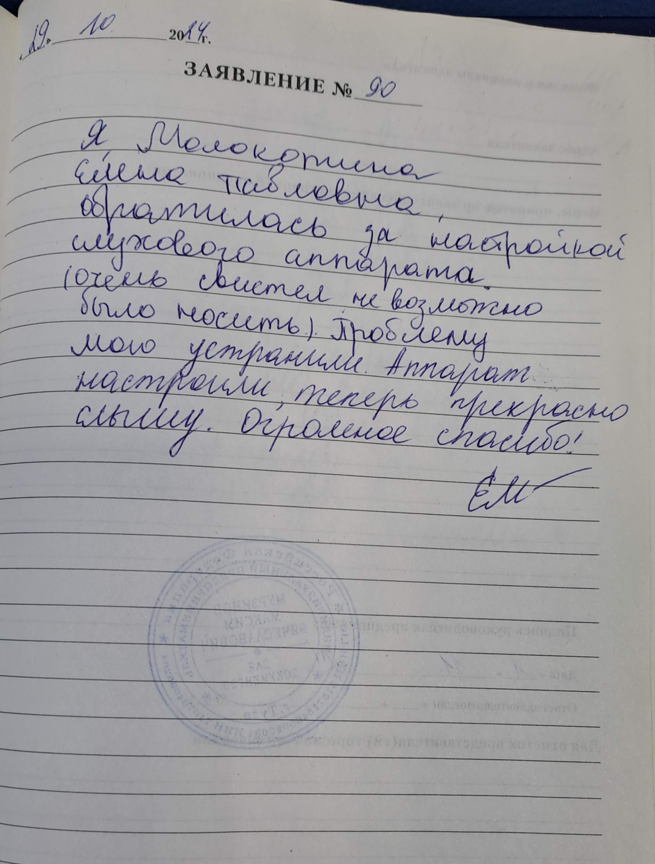 Я. Молокотина Елена Павловна, обратилась за настройкой слухового аппарата. ( очень свистел не возможно было носить) Проблему мою устранили, аппарат настроили, теперь прекрасно слышу. Огромное спасибо!