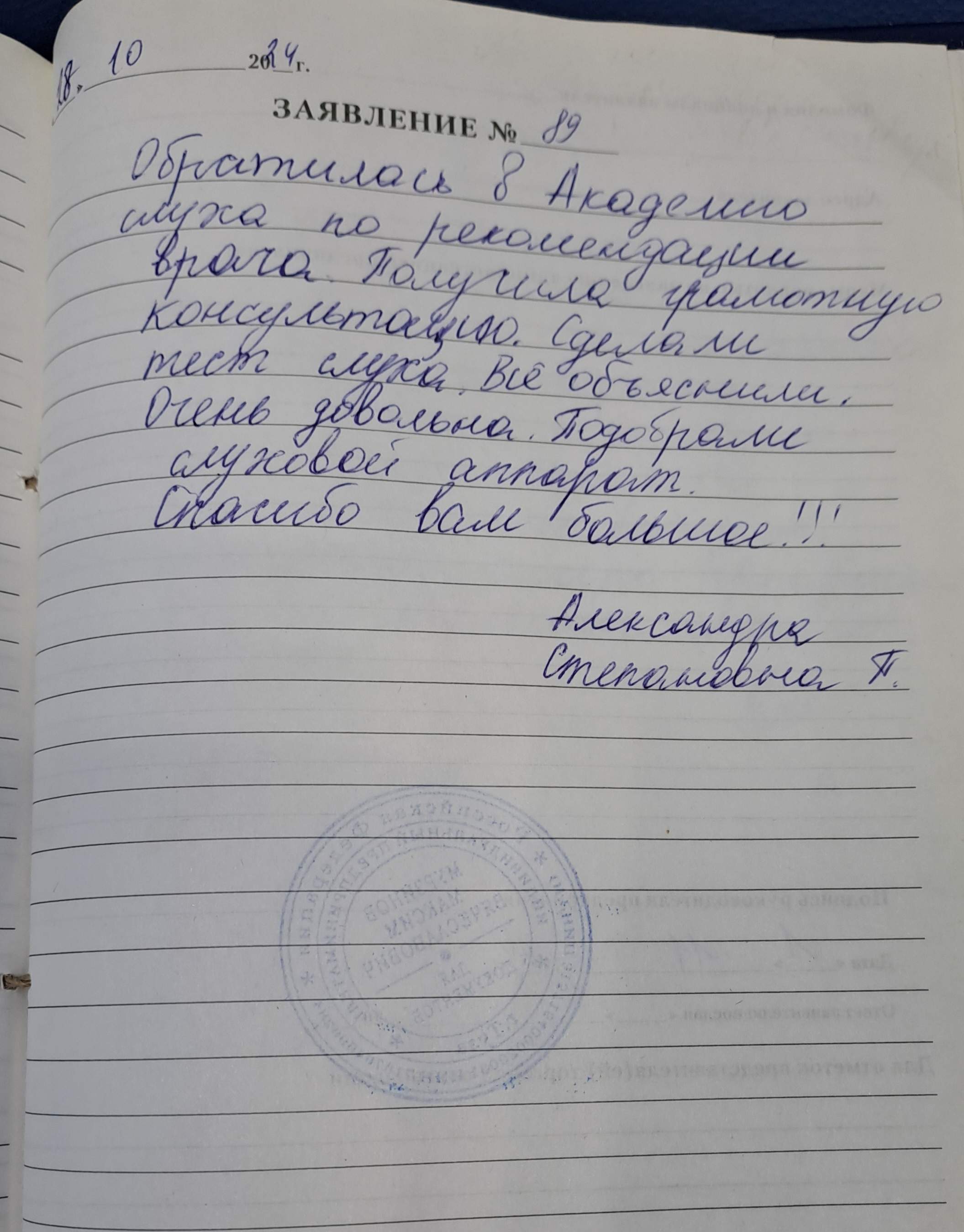 Большое спасибо сотрудникам за внимательно отношение к пациентам, грамотно все объяснили, показали. Надеюсь, что буду хорошо слышать и помнить добрым словом вспоминать ваш коллектив