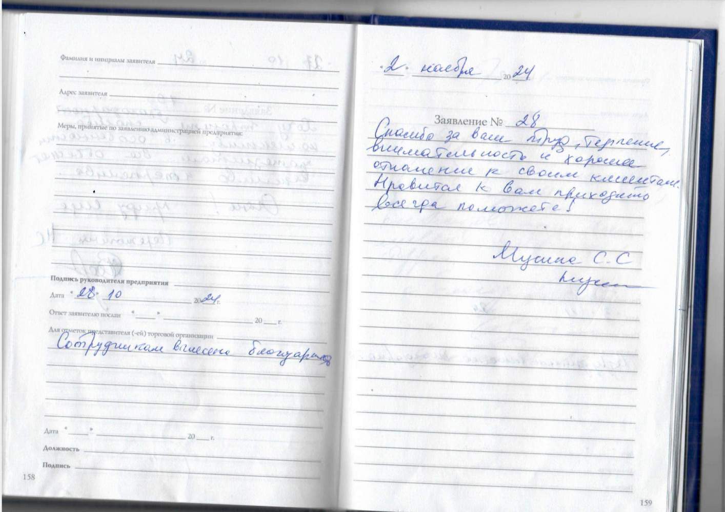 Как довольный и постоянный клиент магазина выражаю благодарность сотрудникам.Хочу пожелать им хороших клиентов и процветания в их жизни и работе.