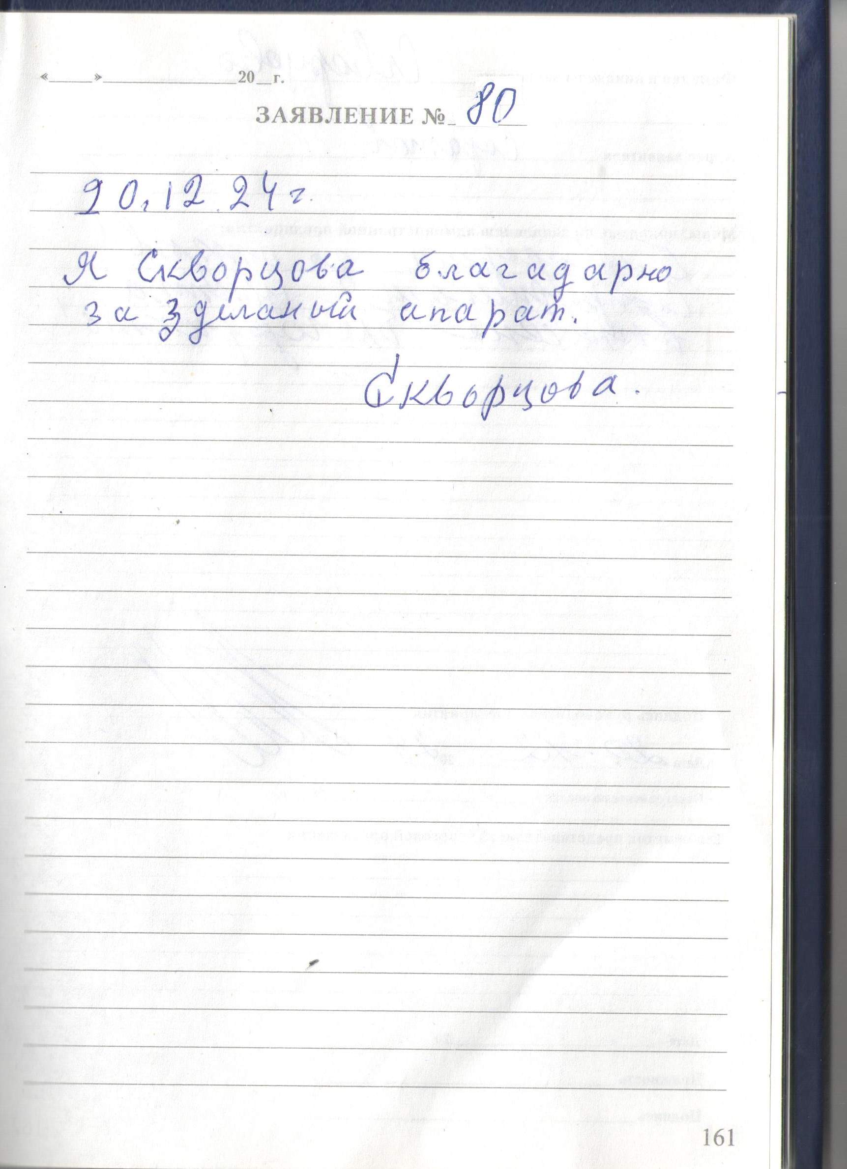 Я, Драпкина Мария Михайловна, благодарна за внимание и квалифицированную помощь в приобретении и настройке слуховых аппаратов Виденеевой Наиле Рамилевне и Сайидовой Измире Хасмагомедовне. Желаю здоровья и дальнейшей плодотворной работы
