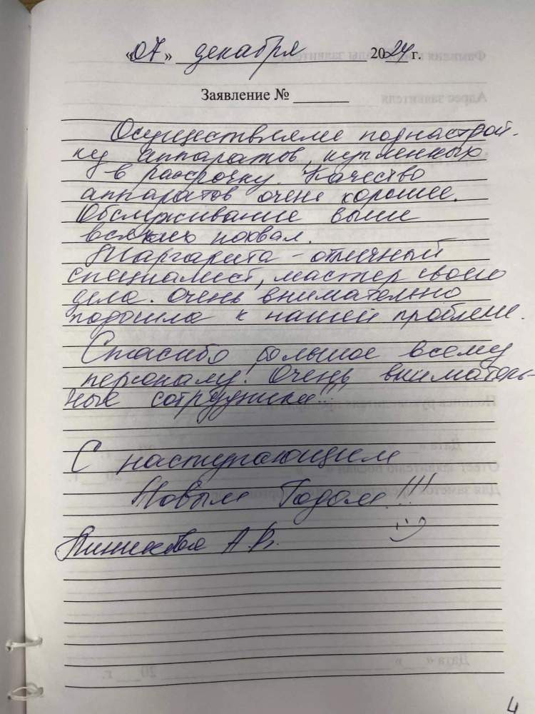 Осуществляли поднастройку аппаратов, купленных в рассрочку. Качество аппаратов очень хорошее. Обслуживание выше всяких похвал. Маргарита - отличный специалист, мастер своего дела. Очень внимательно подошла к нашей проблеме. Спасибо большое всему персоналу! Очень внимательный сотрудники!!! С наступающим Новым Годом!!!