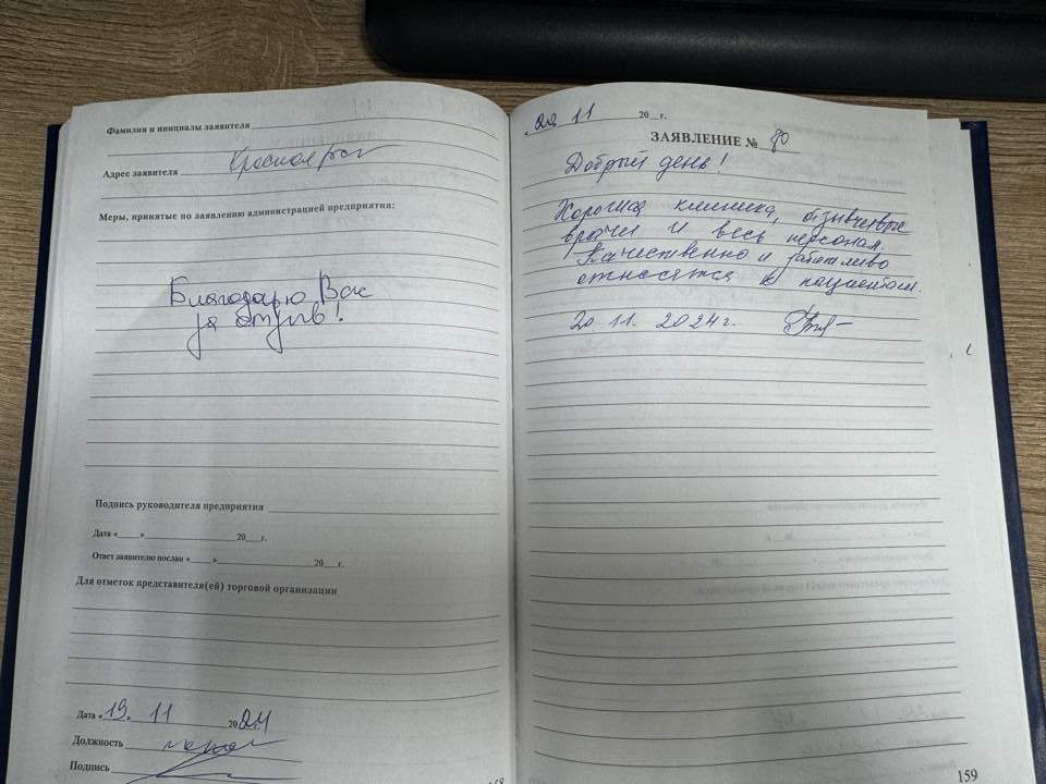 Добрый день! Хорошая клиника, отзывчивые врачи и весь персонал.Качественно и вежливо относятся к пациентам.