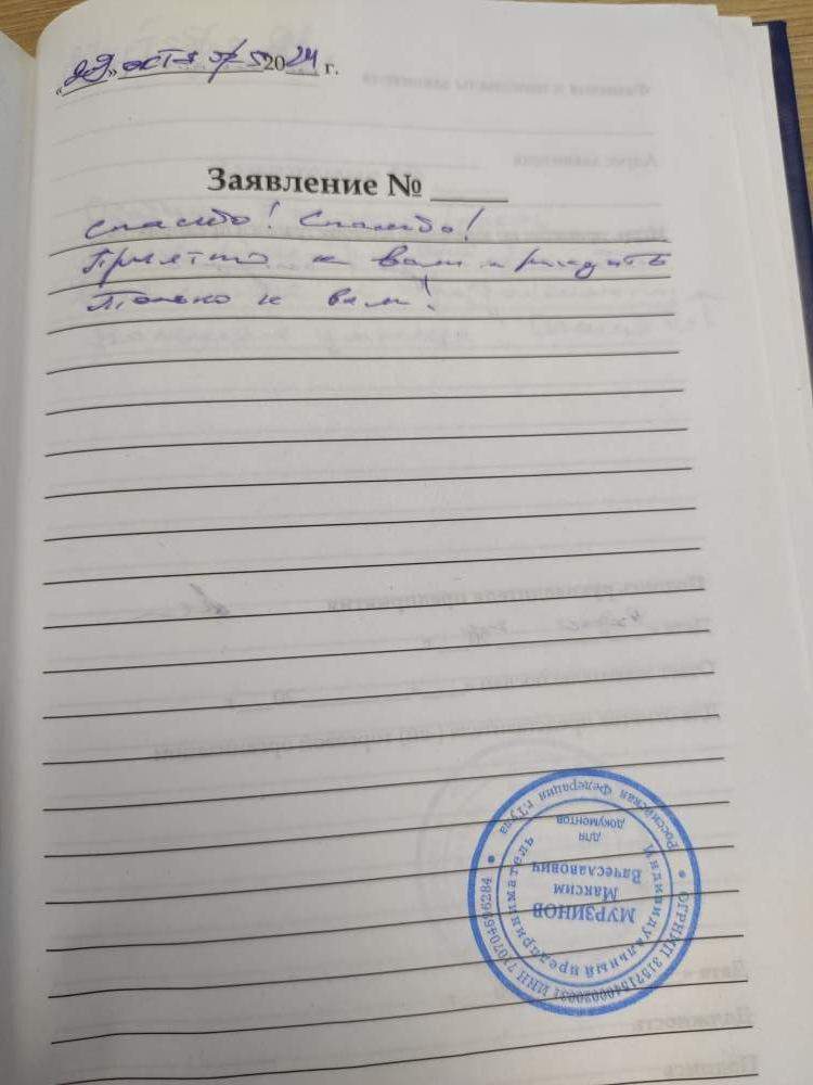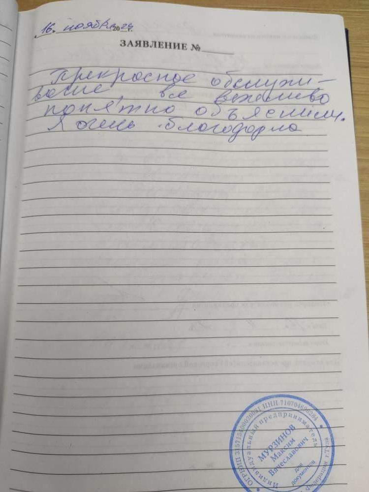 Прекрасное обслуживание, все вежливо, понятно все объяснили. Я очень благодарна.
