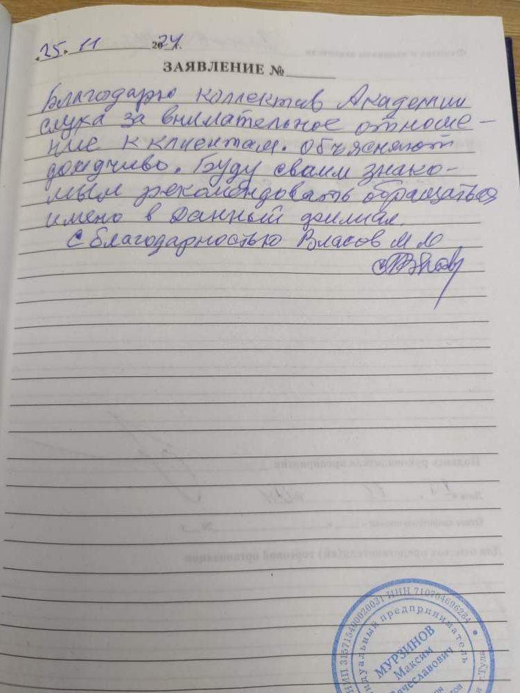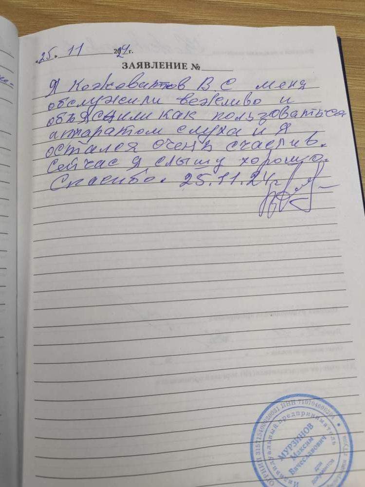 Я благодарю коллектив центра "Академия слуха" зв вежливое отношение, за помощь посетителям. Я довольна, что с приобретением слухового аппарата, я стала слышать и ощущать себя здоровым человеком.