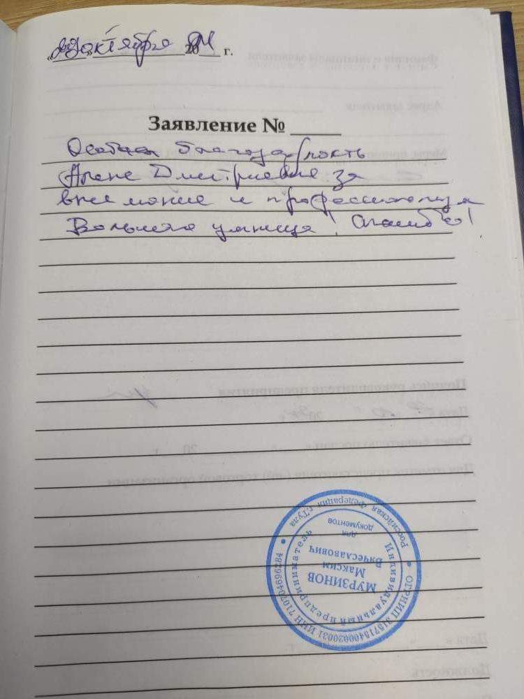 Особая благодарность Алене Дмитриевне за внимание и профессионализм. Большая умница. Спасибо!