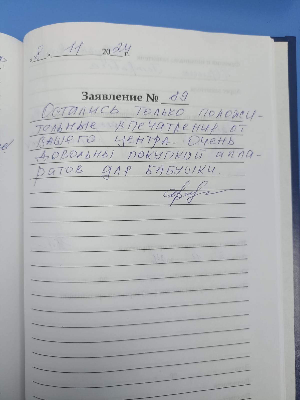 Остались только положительные впечатления от вашего центра. Очень довольны покупкой аппаратов для бабушки.