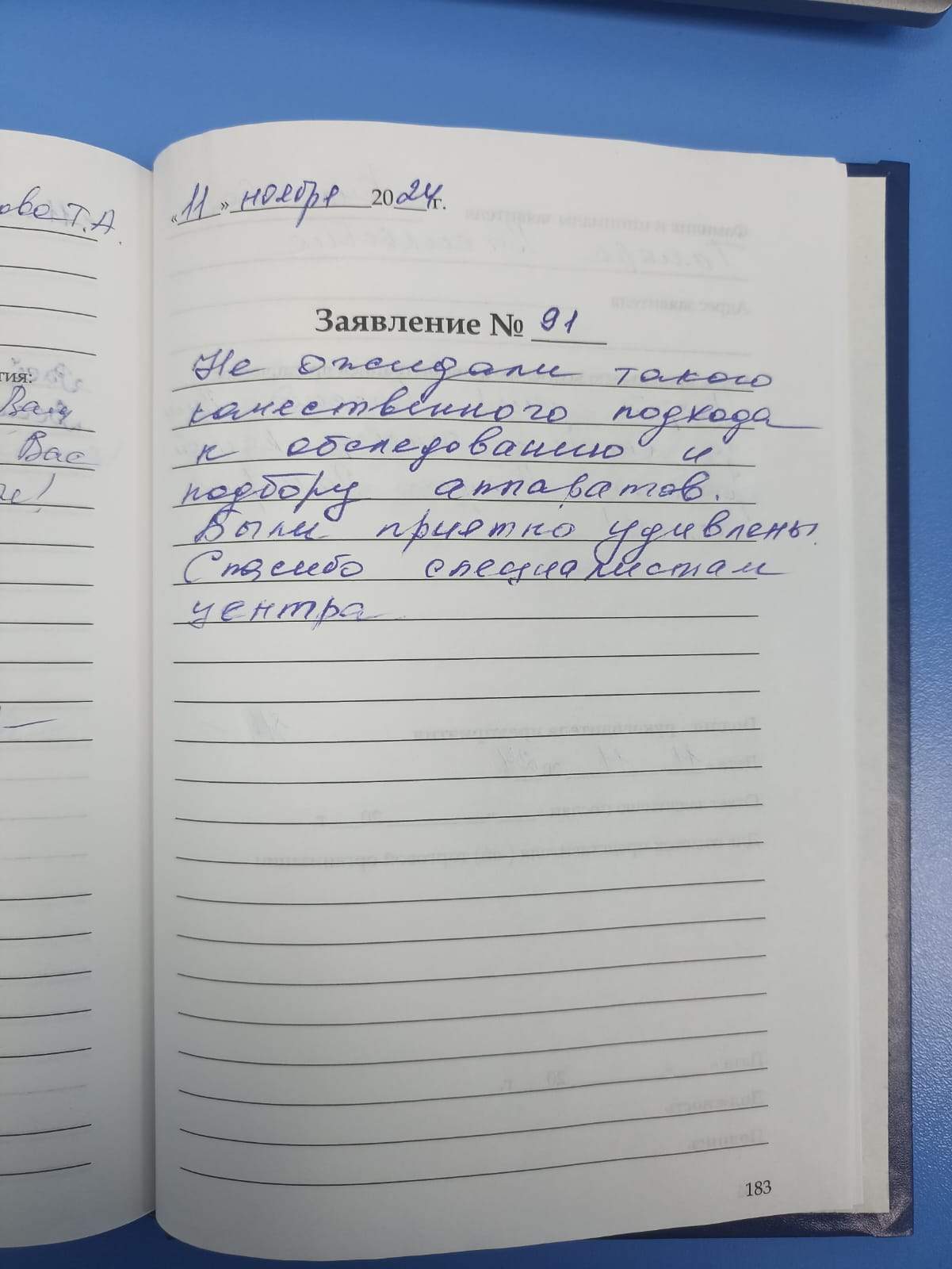 Не ожидали такого качественного подхода к обследованию и подбору аппаратов. Были приятно удивлены. Спасибо специалистам центра.