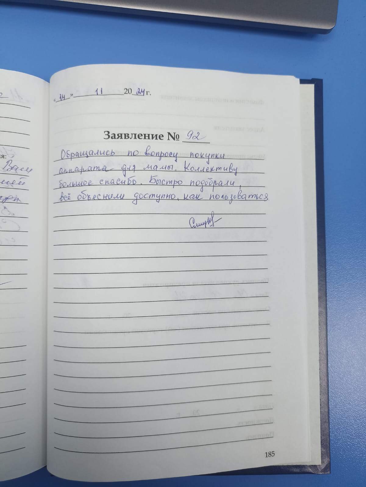 Обращались по вопросу покупки аппарата для мамы. Коллективу большое спасибо. Быстро подобрали, все объяснили доступно, как пользоваться.