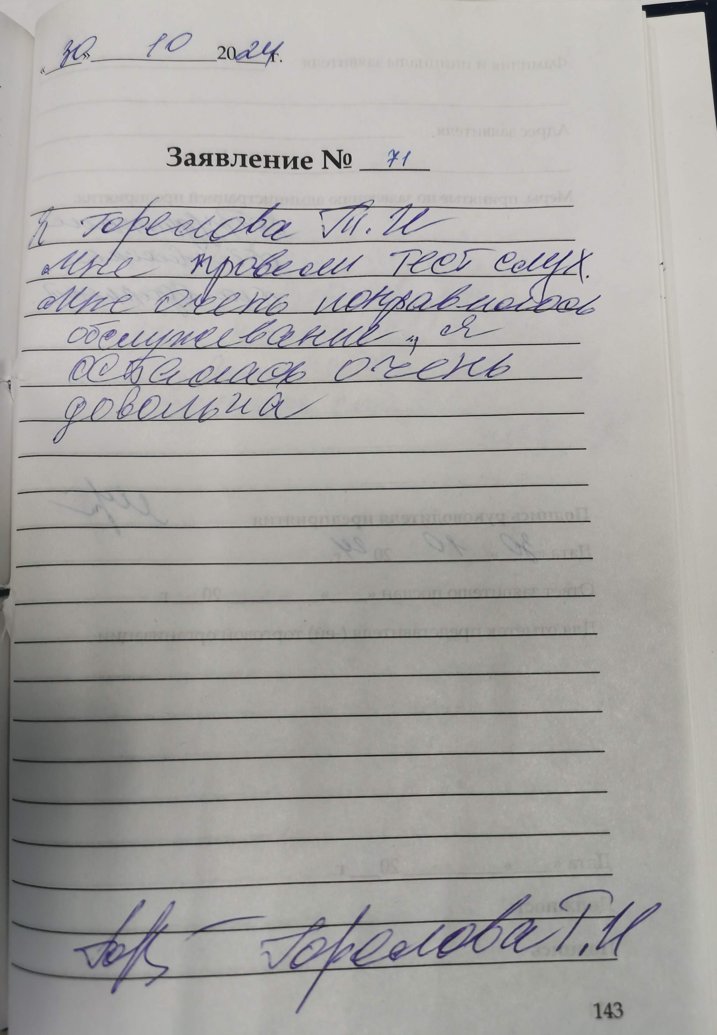 Я, Горелова Т.И. мне провели тест слуха. Мне очень понравилось обслуживание. Я осталась очень довольна. Горелова Т.И.