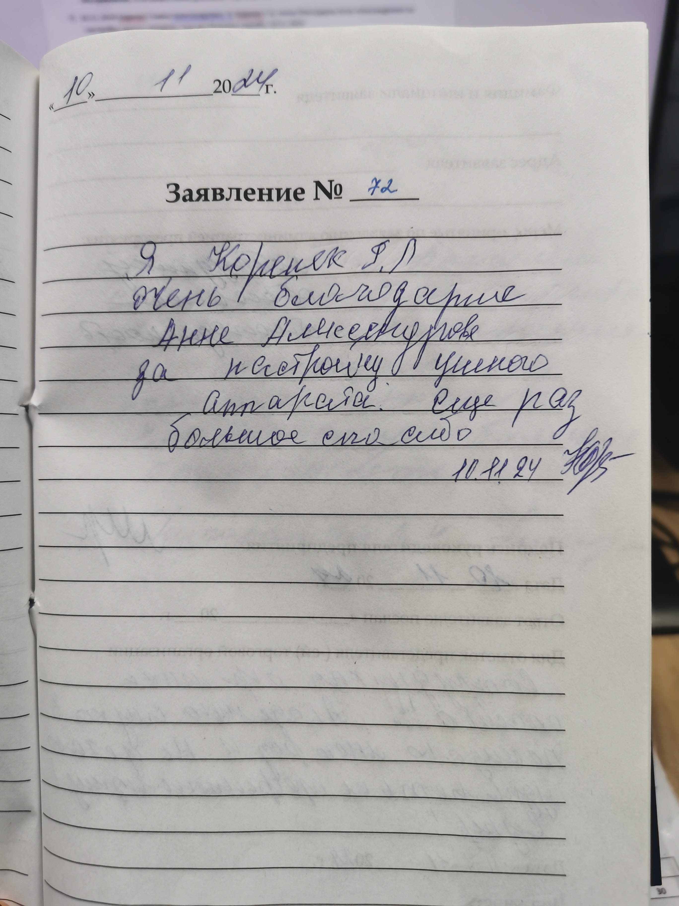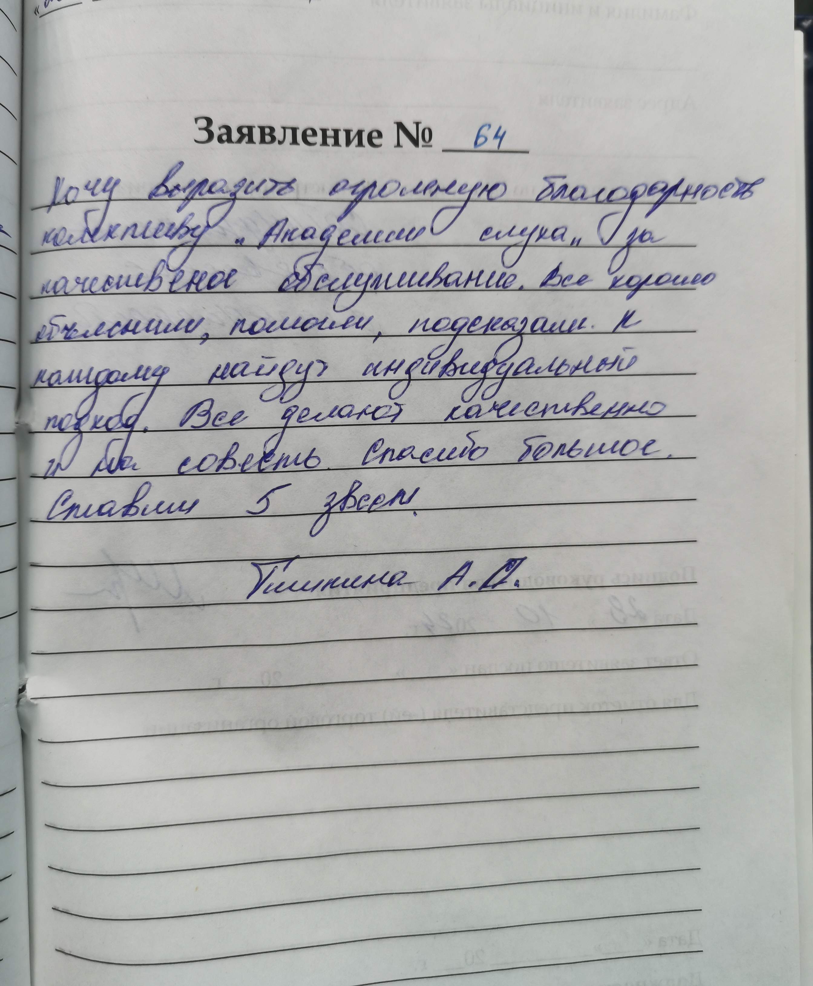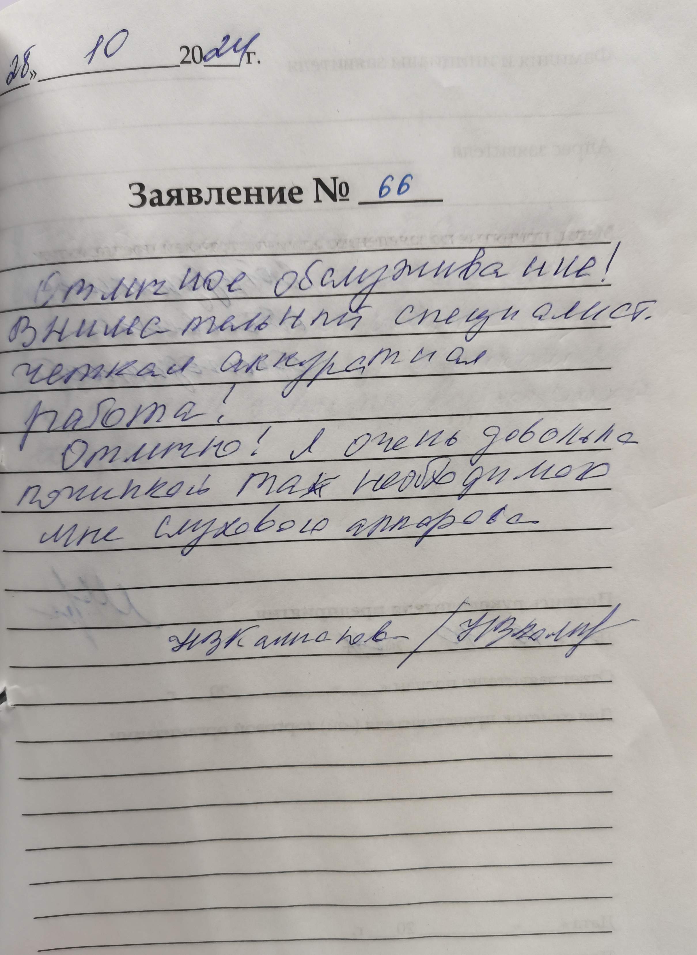 Я, Коренек Г.А. очень благодарна Анне Александровне за настройку ушного аппарата. Еще раз большое спасибо. 10.11.2024