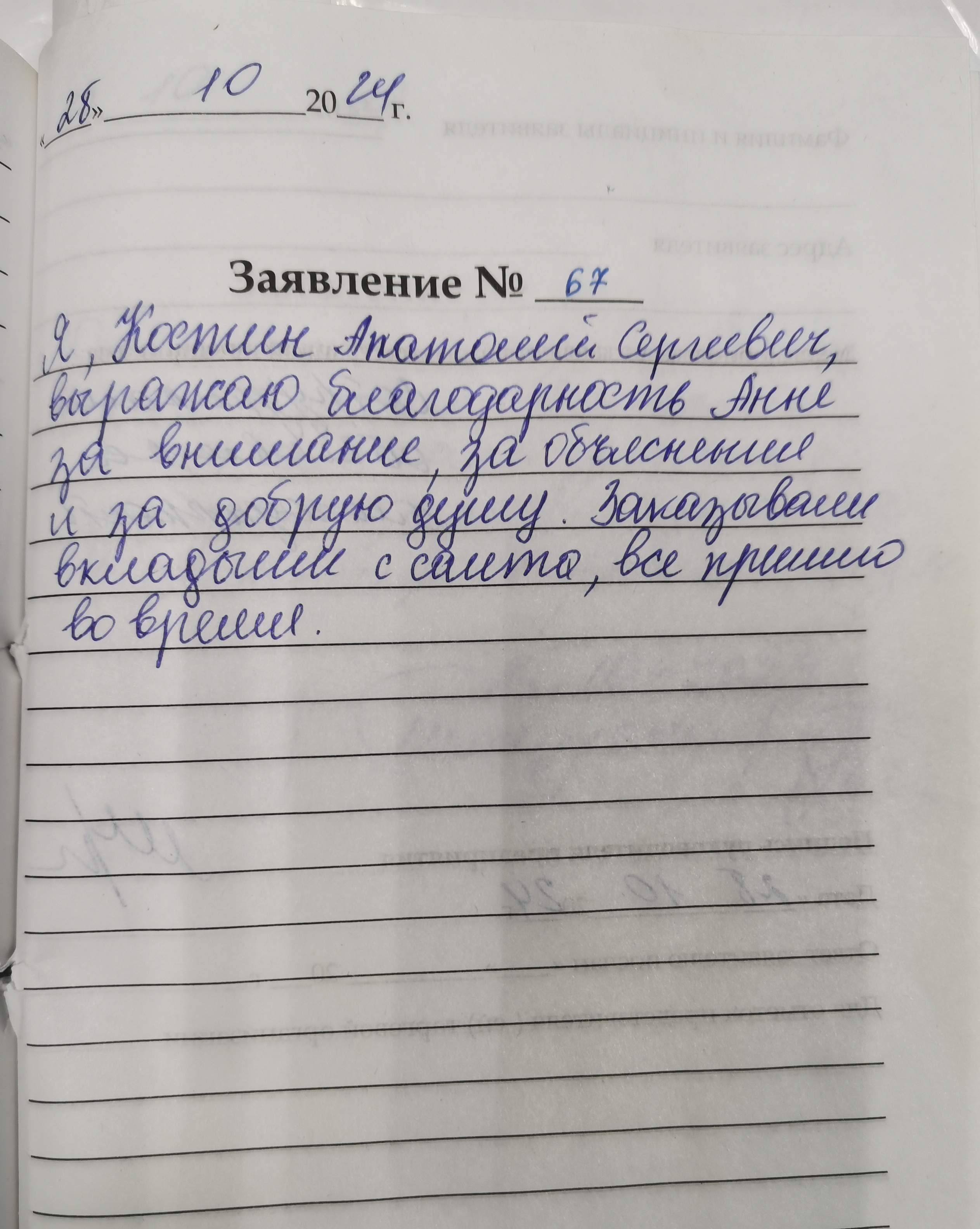 Я, Костин Анатолий Сергеевич выражаю благодарность Анне за внимание, за объяснение и за добрую душу. Заказывали вкладыши с сайта, все пришло вовремя.