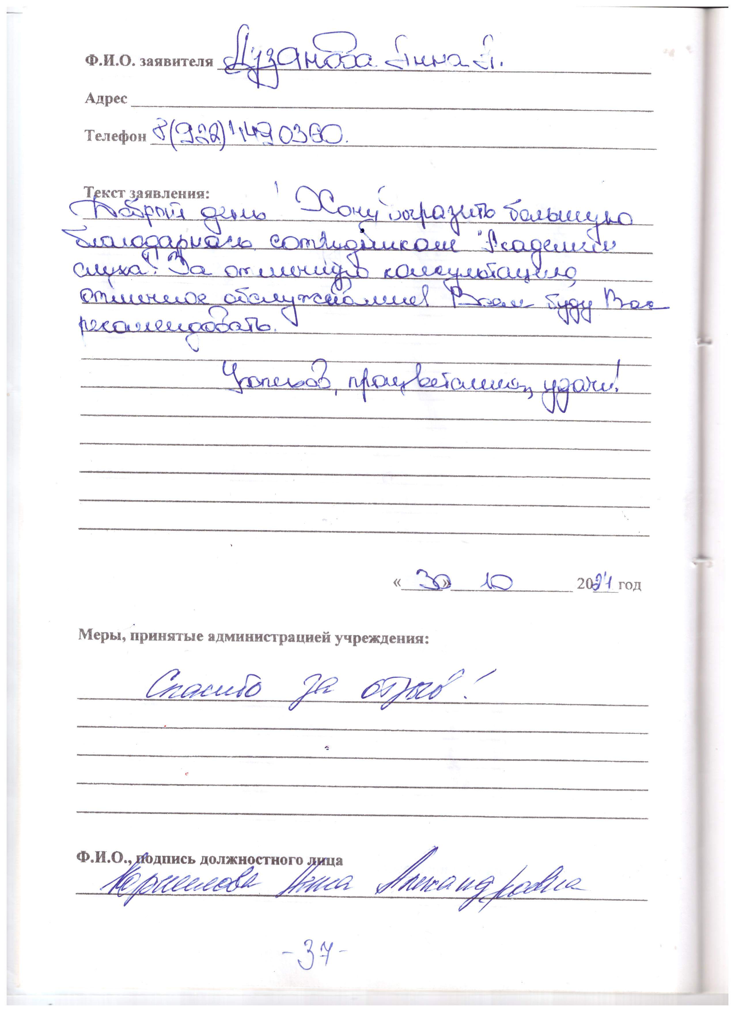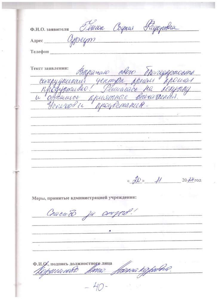 Выражаю свою благодарность сотрудникам центра, прием прошел продуктивно! Решалась на покупку и остались приятные впечатления. Успехов и процветания.