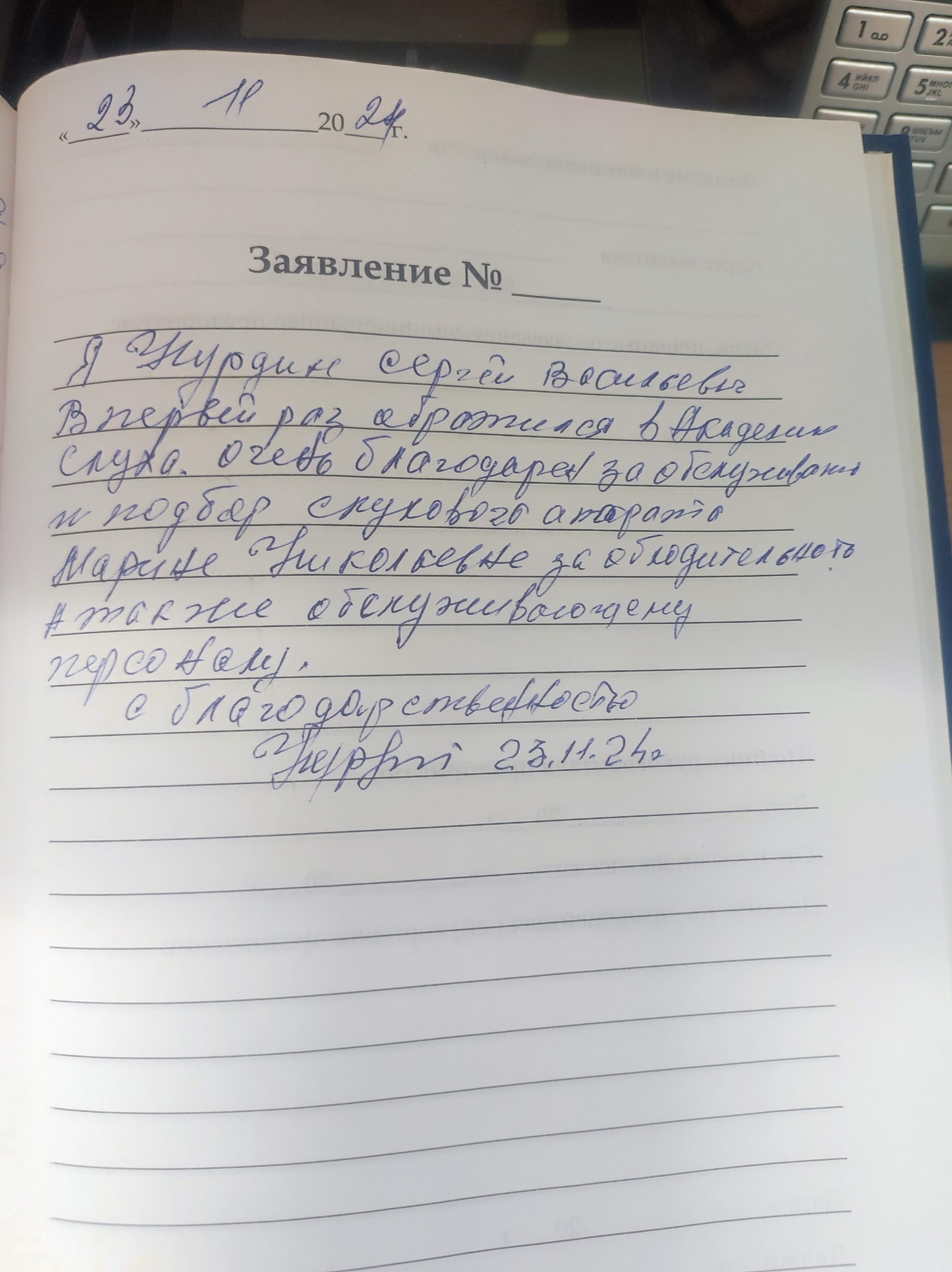 Я,Нурдин Сергей Васильевич в первый раз обратился в Академию слуха.Очень благодарен за обслуживание и подбор слухового аппарата Марине Николаевне за обходительность.А так же обслуживающему персоналу.
