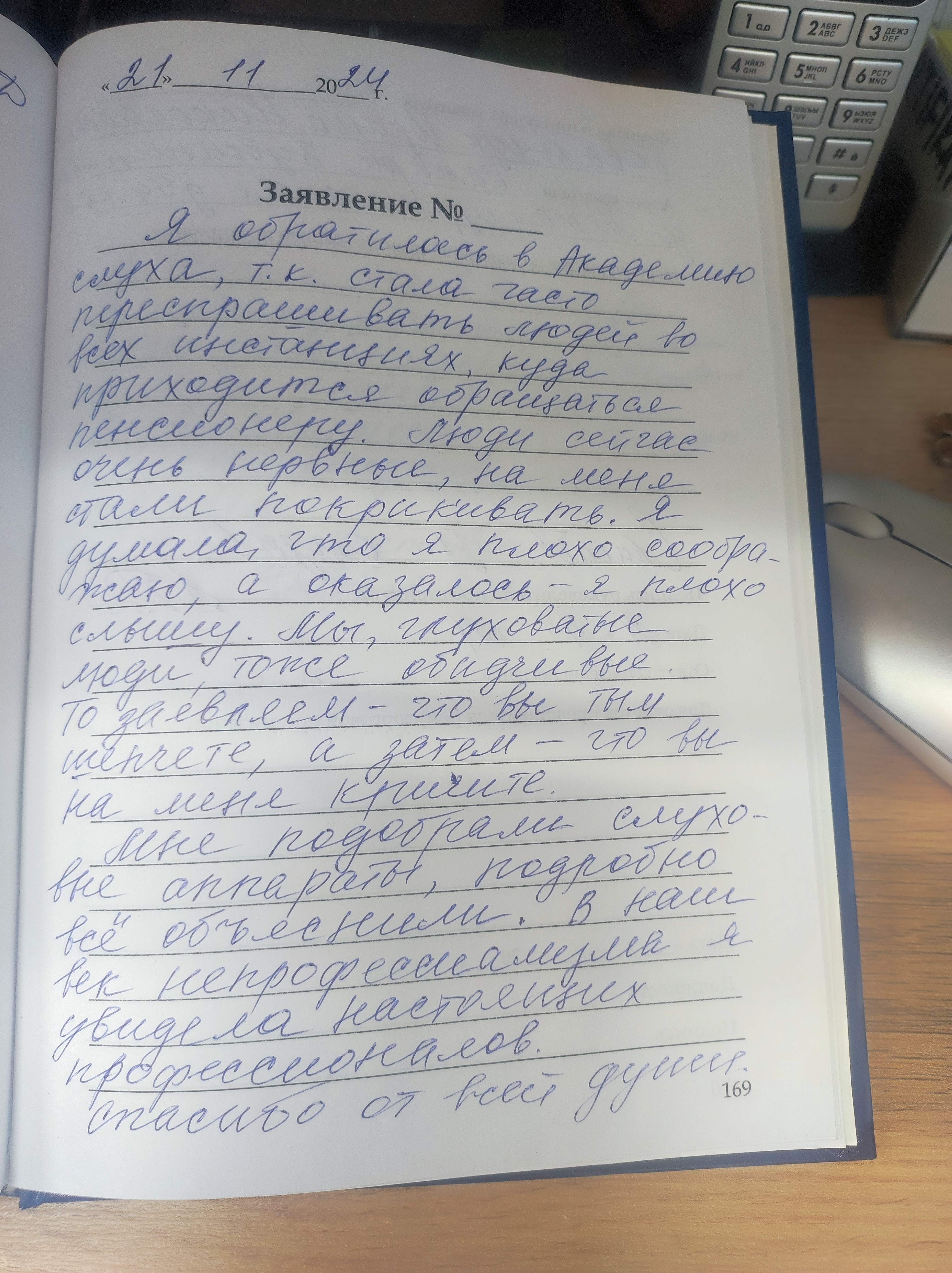 Я обратилась в Академию слуха,т.к. сала часто переспрашивать людей во всех инстанциях,куда приходится обращаться пенсионеру.Люди сейчас очень нервные,на меня стали покрикивать.Я думала ,что я плохо соображаю,а оказалось -я плохо слышу. Мы, глуховатые люди,тоже обидчивые.То заявляем,что вы там шепчите,а затем-что вы на меня кричите.