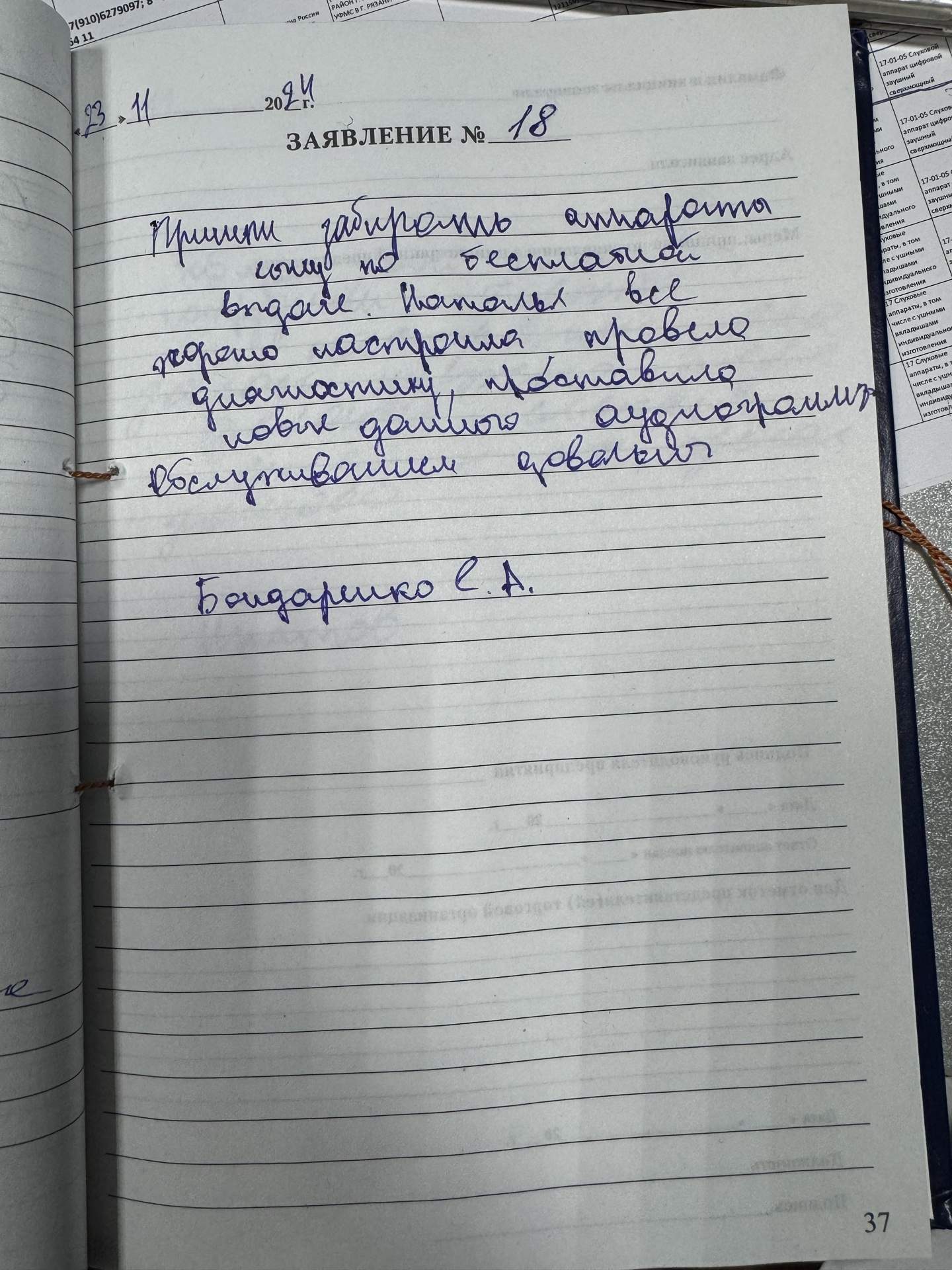 пришли забирать аппараты по бесплатной выдаче.Наталья все хорошо настроила, провела диагностику, поставила новые данные аудиограммы.обслуживанием довольны